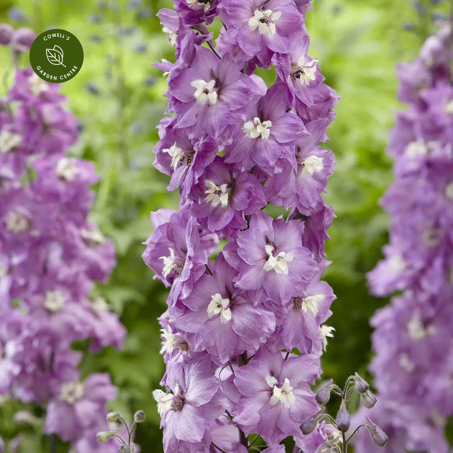 Delphinium 'Strawberry Fair' is a charming cottage garden perennial producing elegant spires of soft pink flowers with delicate pale centres, adding height, structure and a romantic feel to summer borders.