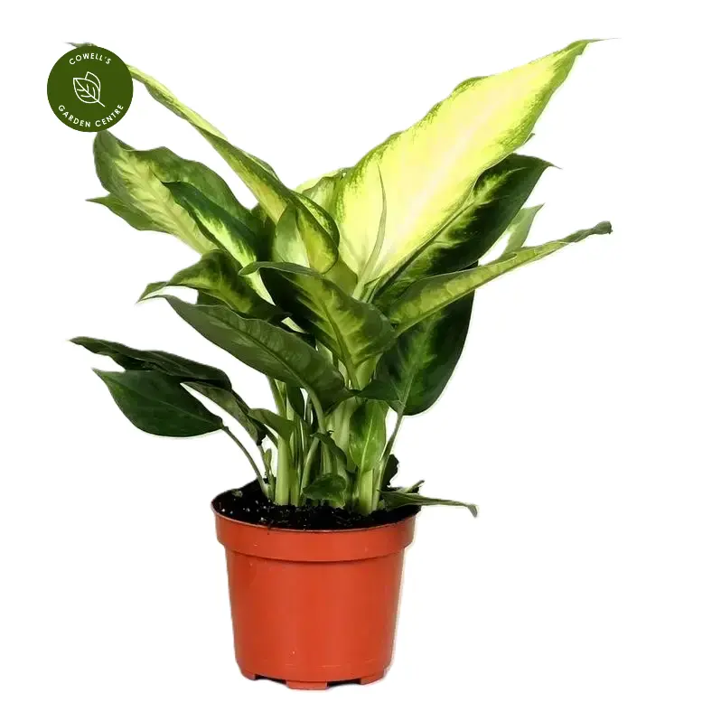Dieffenbachia ‘Camilla’ is a striking bushy houseplant with broad leaves in deep green that soften to creamy white through the centre. The elegant contrast creates a fresh, luminous look, while the large foliage brings bold tropical character and strong visual impact to indoor plant displays.