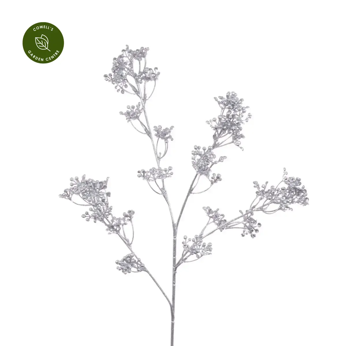 Sparkling artificial dill seedhead spray, ideal for enhancing a festive arrangement or adding into your Christmas tree for next level decor.