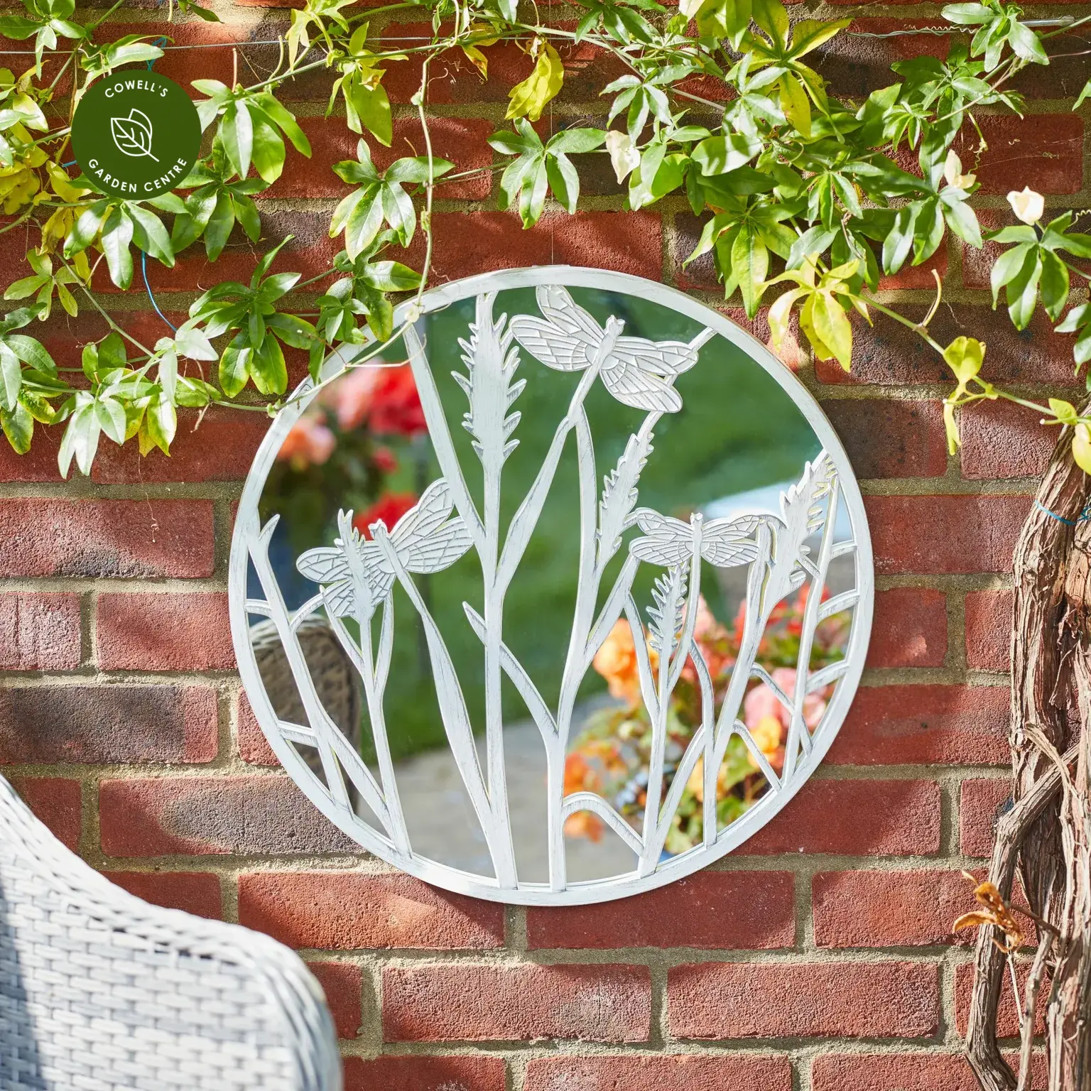 Enhance your home or garden with this decorative mirror, designed to reflect light and create a greater sense of space. Featuring an intricate dragonfly design, it makes a striking focal point on walls, fences or patios, bringing both style and brightness to indoor or outdoor settings.