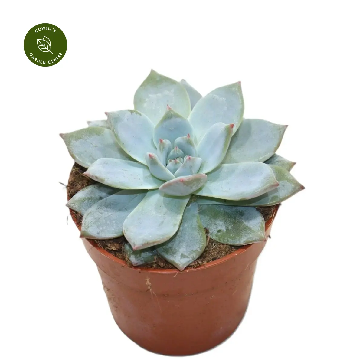Echeveria ‘Blue Bird’ is a beautiful rosette-forming succulent with broad, powdery blue-grey leaves that develop soft pink and lilac tones at the edges in good light. Its symmetrical form and cool colouring give it a refined, sculptural look that suits modern interiors perfectly.