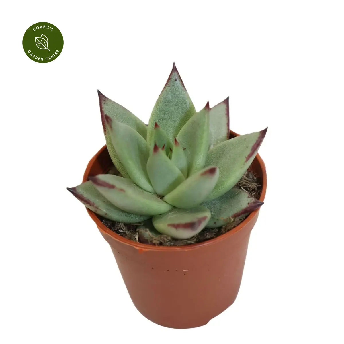 Echeveria ‘Sirius’ is a compact, eye-catching succulent forming a neat rosette of thick, fleshy leaves in cool blue-green tones, often flushed with soft lilac or pink at the edges. Its symmetrical shape and powdery finish give it a refined, sculptural look that works beautifully in modern interiors.