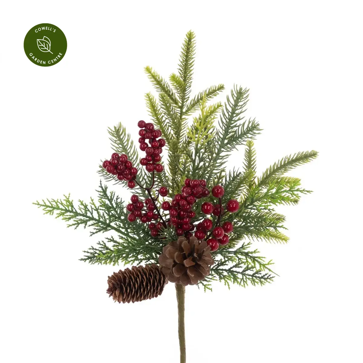 Rich green foliage spray bearing textural foliage and holly berries, to use in a table decoration or to elevate your Christmas displays.