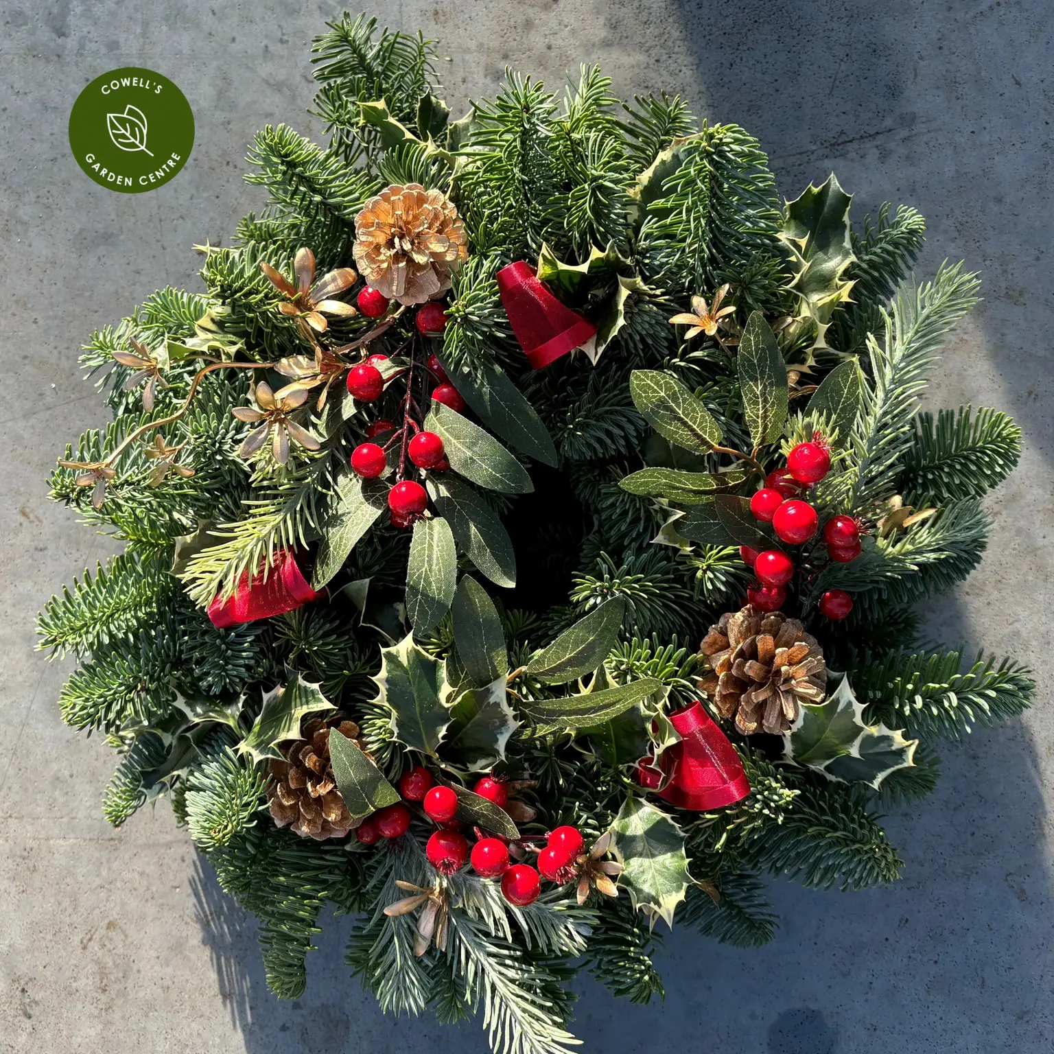 This wreath is made from the finest Noble Fir foliage sourced from sustainably managed British forests.