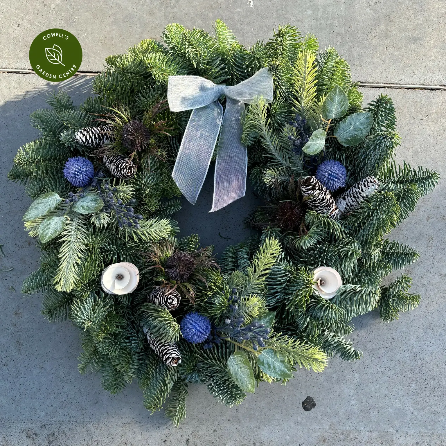 This wreath is made from the finest Noble Fir foliage sourced from sustainably managed British forests.
