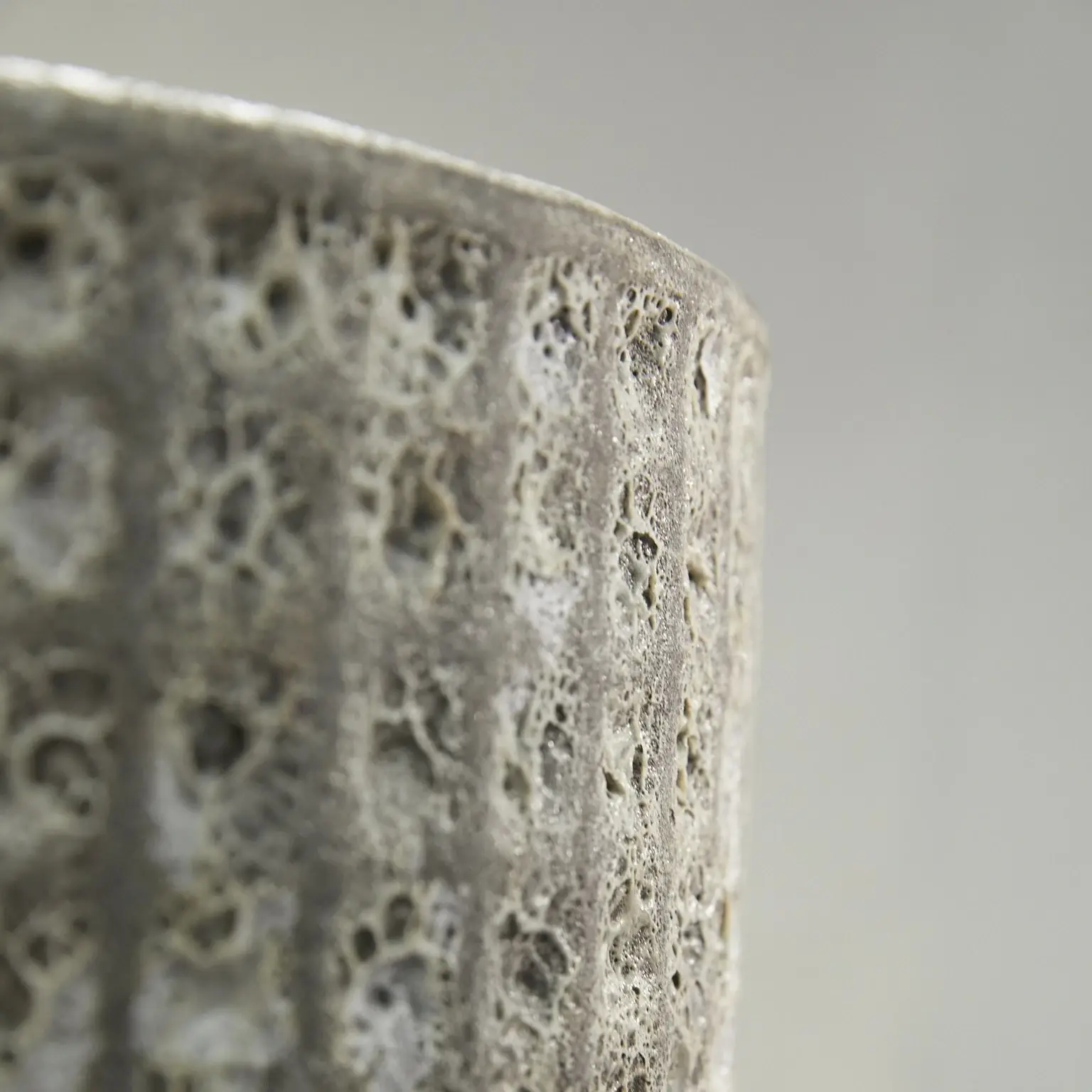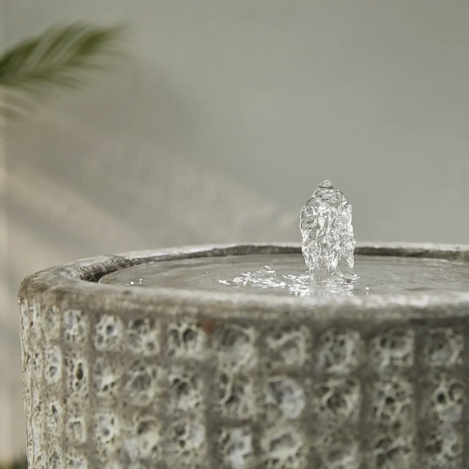 Planter design with a stunning waffle pattern. Handcrafted in a specialist workshop to give each piece a unique character. Soft white glazed ceramic finish, which undergoes a heat treated process - lending to an aged appearance. Water bubbles up from the centre of the saucer and flows across its surface.