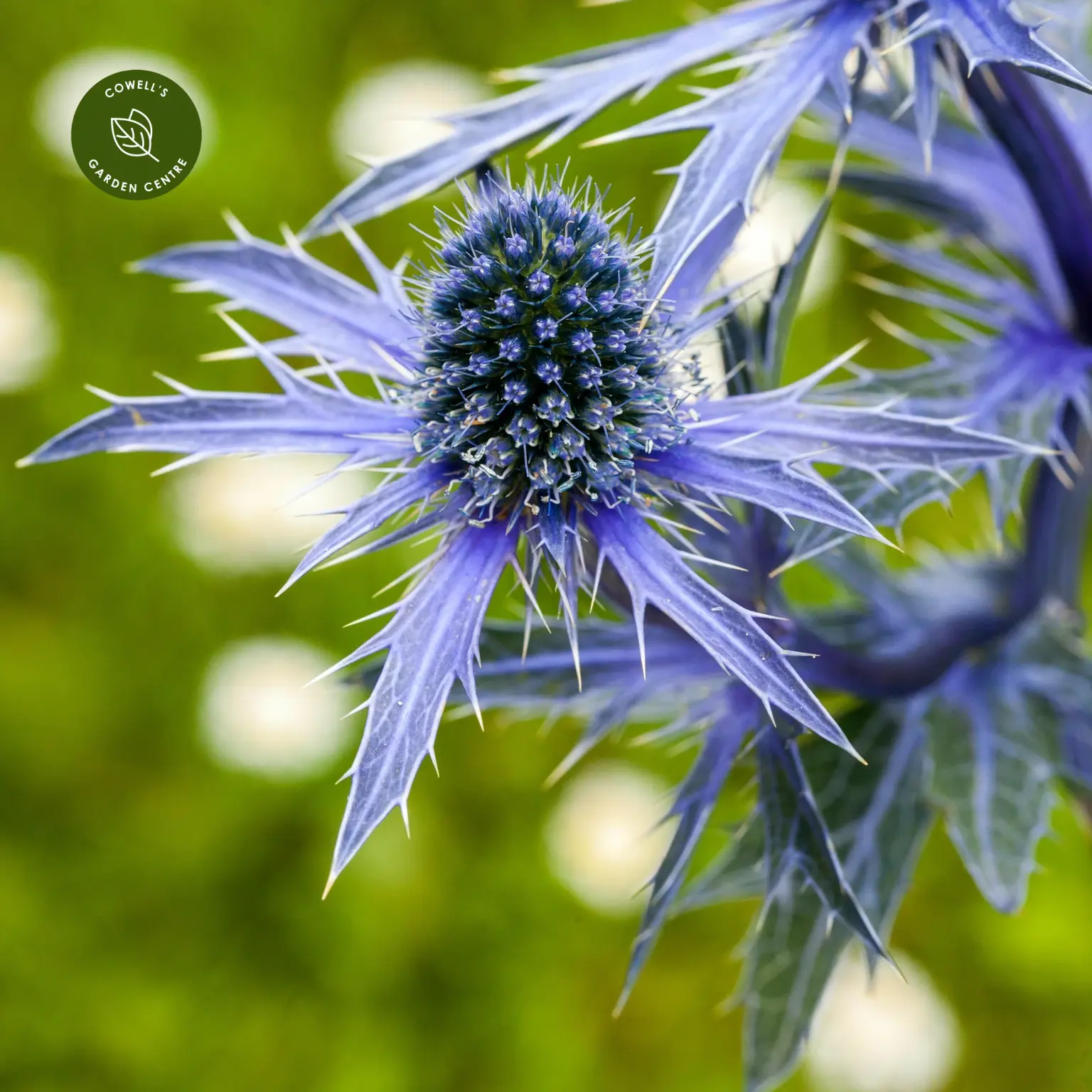 - Metallic blue thistle-like flowers