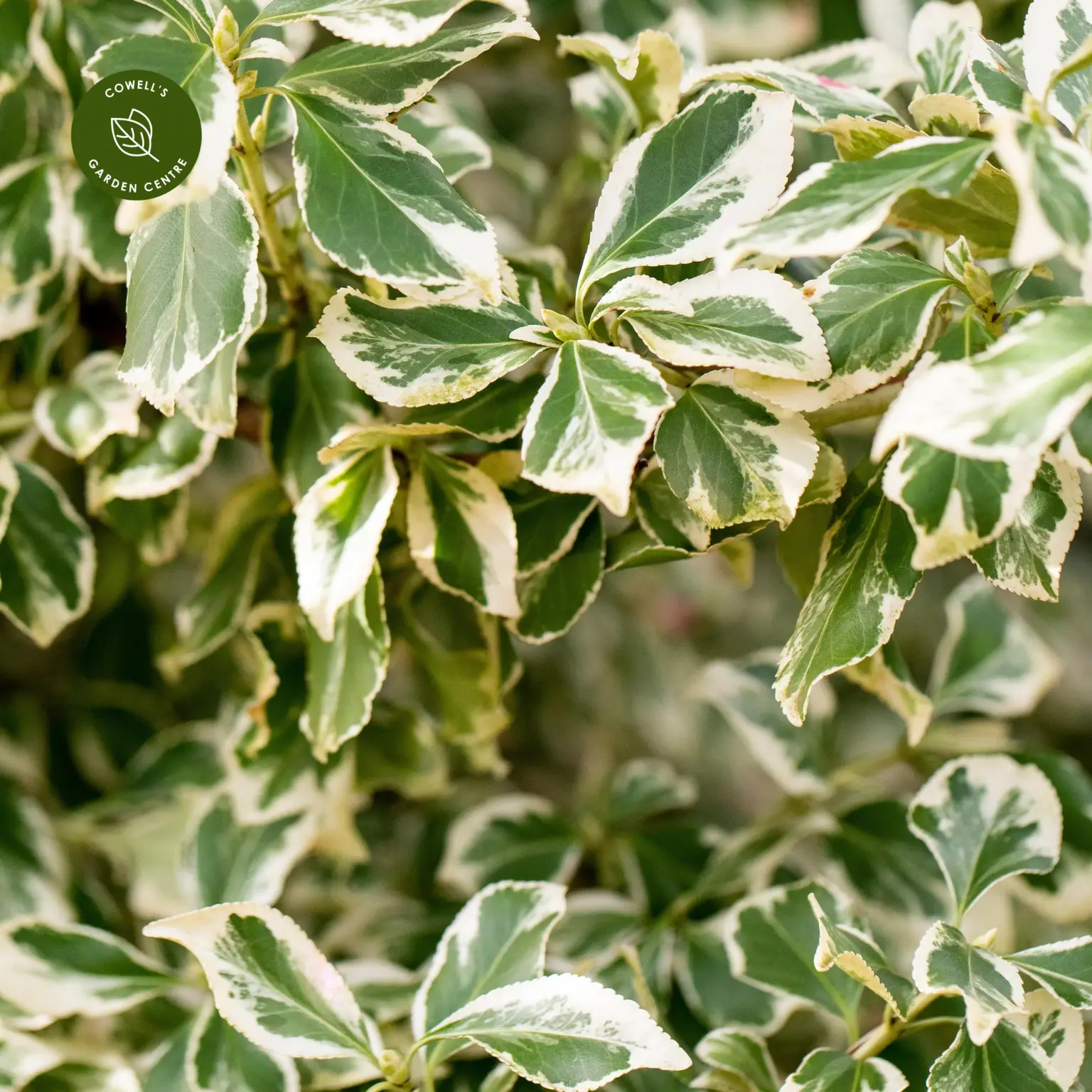 Euonymus 'Emerald Gaiety' is a versatile evergreen shrub with attractive variegated foliage. Its small, ovate leaves are dark green with irregular white margins, which often take on a pink flush in colder weather for added seasonal interest. Naturally bushy and compact, it can be grown as groundcover, low hedging, or trained to climb against supports.
