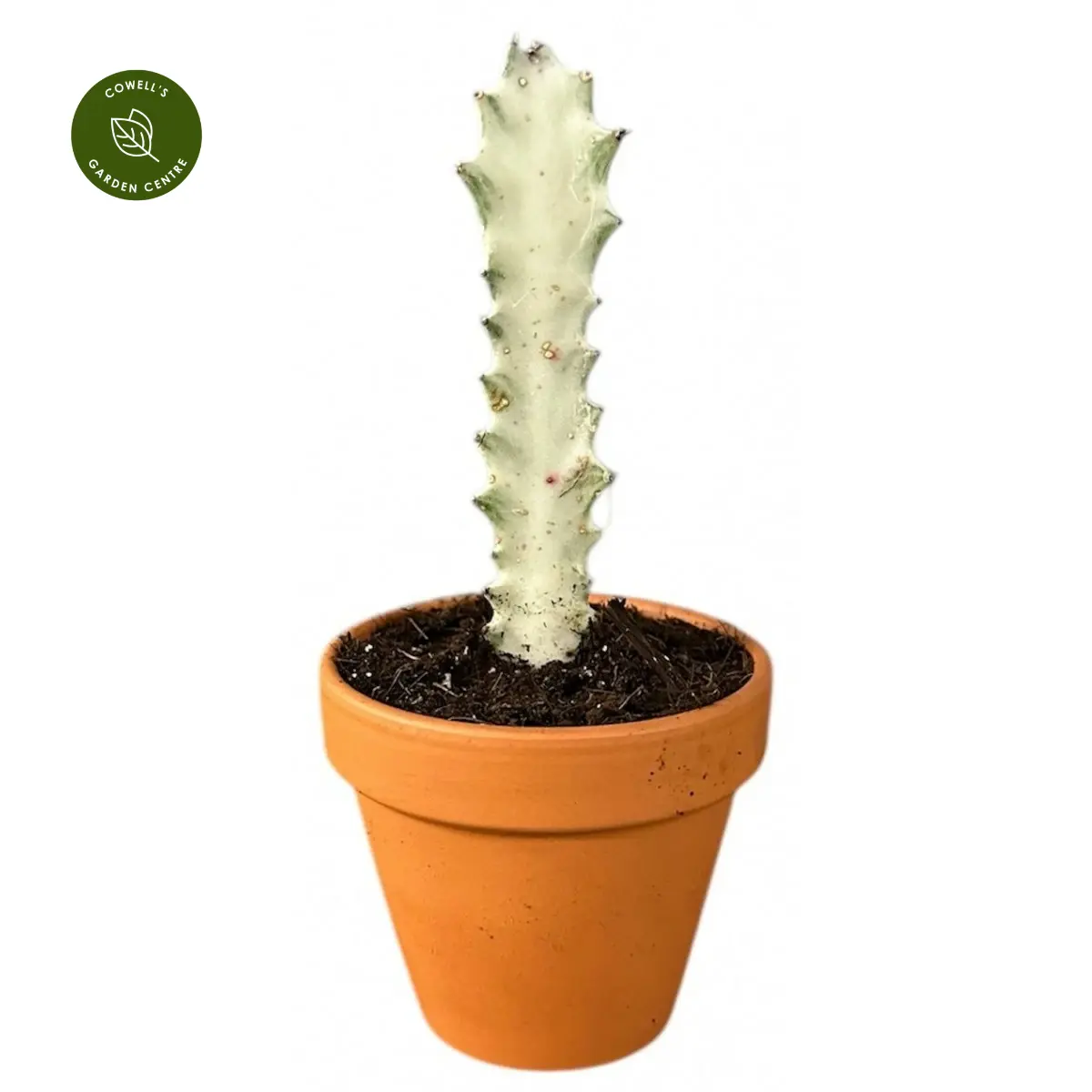 Euphorbia lactea ‘White Ghost’ is a striking architectural succulent with upright, sculptural stems in pale silvery-white with soft green undertones. The ghostly colouring and angular, ridged form give it a bold, modern appearance, making it a standout feature in any indoor plant collection.