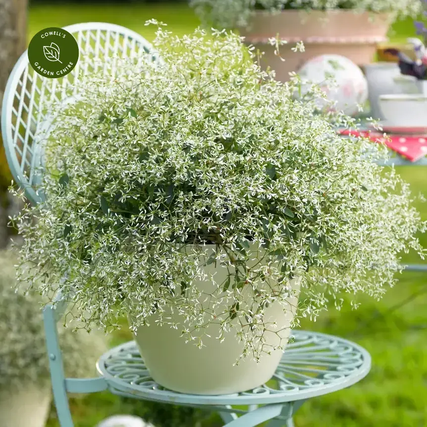 Euphorbia 'Silverfog White Improved' is a light, airy perennial producing clouds of delicate white flowers that create a soft, mist-like effect. Its fine, branching habit adds movement and texture to planting schemes.