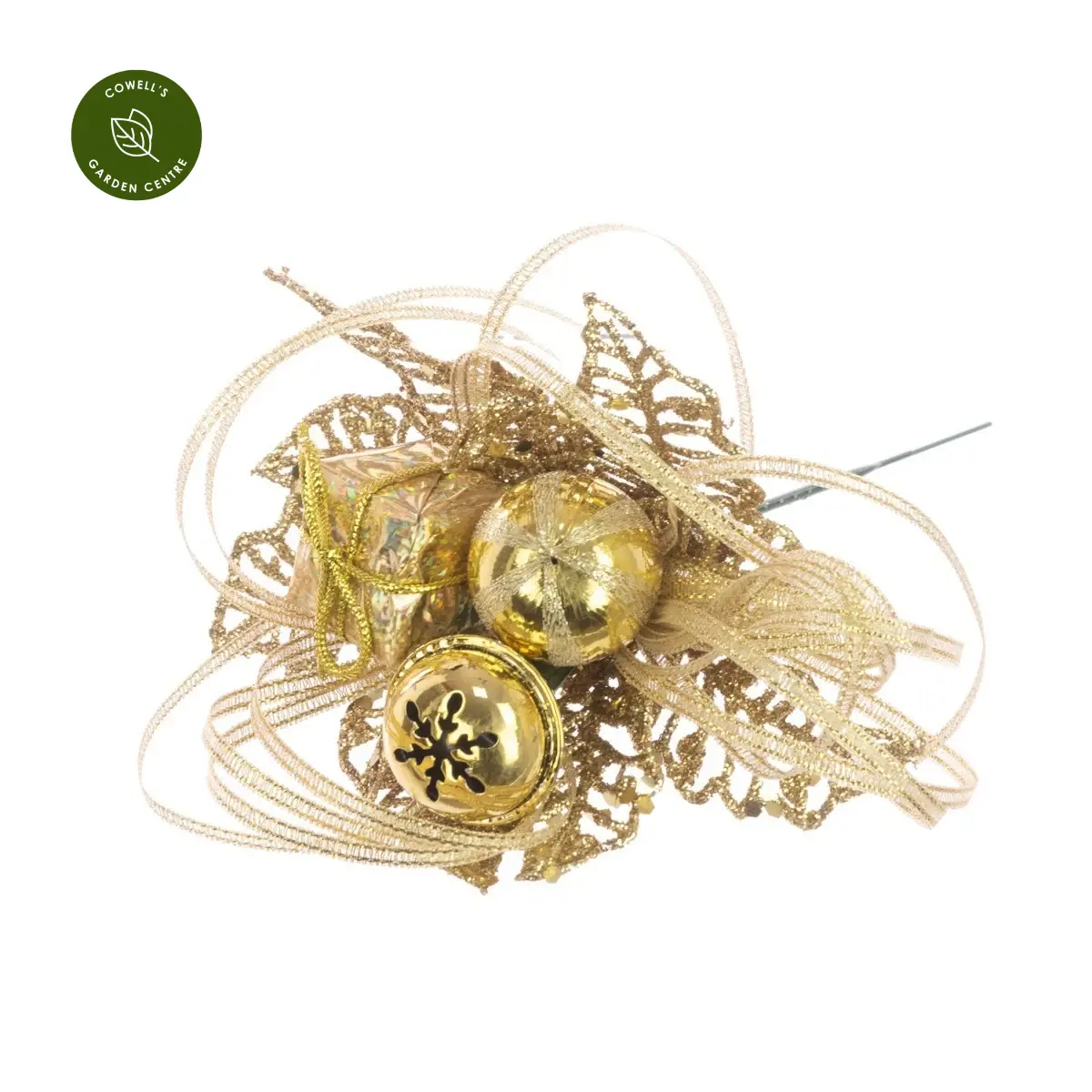 Glittering collection of golden bells, present and details. Use to adorn your tree, home, or add into a table centrepiece.
