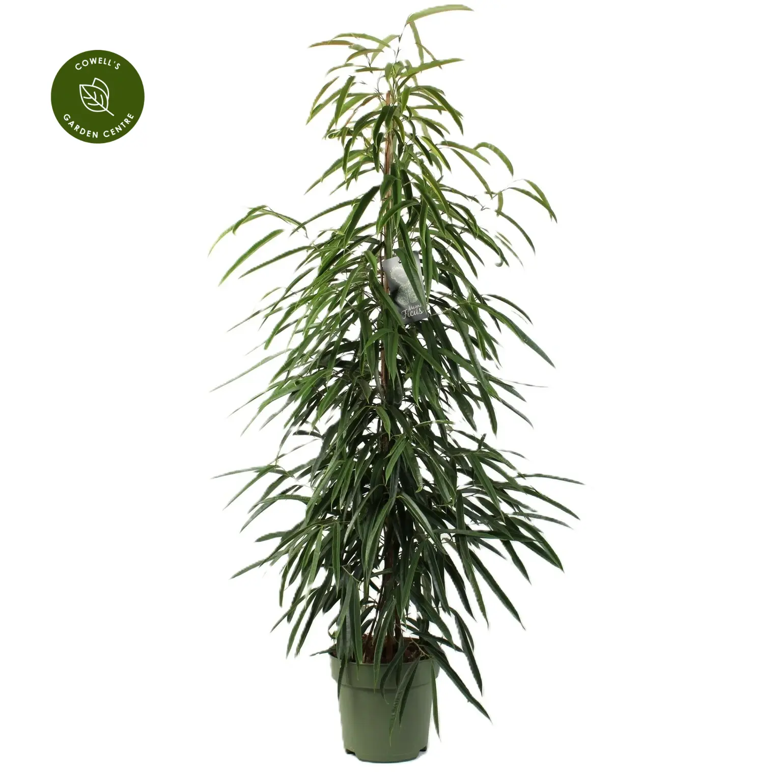 Ficus binnendijkii ‘Alii’ is an elegant, upright houseplant with long, narrow, pointed leaves finished in a deep, glossy green. The refined foliage gives this variety a light, airy look compared to broader-leaved Ficus, making it a popular choice for modern interiors.