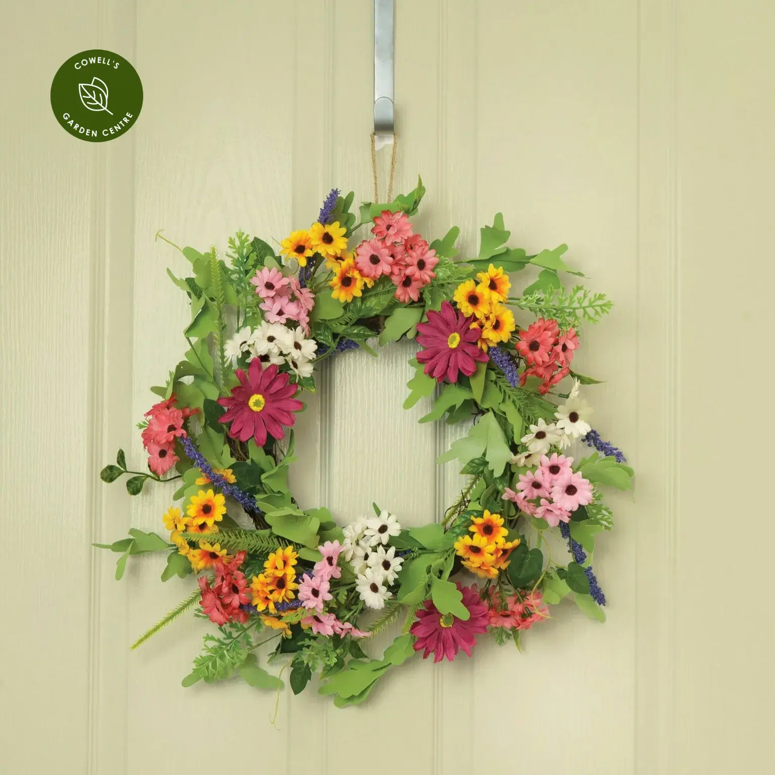 Add instant colour and impact with this maintenance-free artificial floral wreath. Designed to brighten doors, sheds and trellises, it creates a full, vibrant display without any upkeep. Weather and UV resistant, it’s perfect for adding a lasting decorative touch both indoors and out.