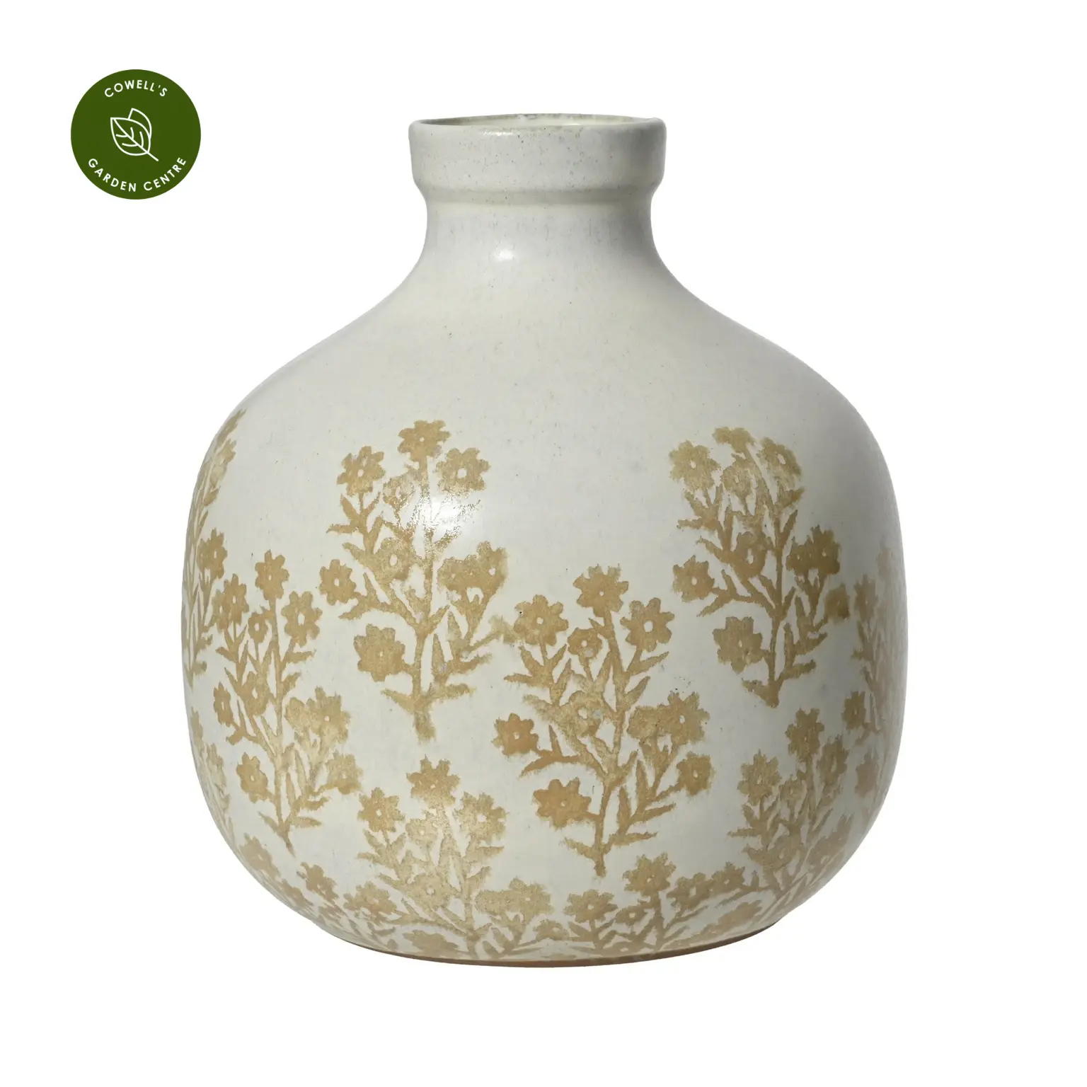 A beautifully handcrafted terracotta vase finished in soft matt off white, featuring a delicate brown floral motif that adds subtle texture and charm to any setting.