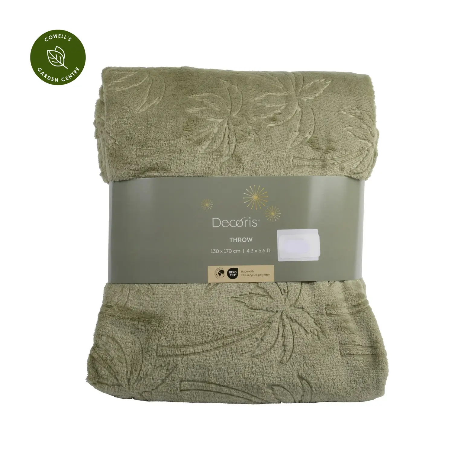 A soft and cosy rectangular throw in a rich forest green, featuring a subtle palm tree design that adds texture and relaxed style to any room.