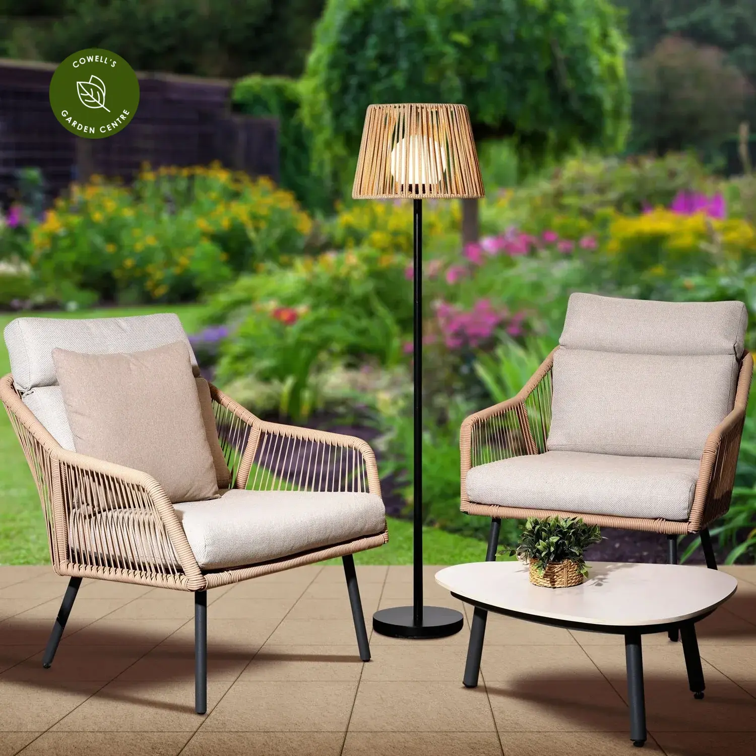 Bring warm, ambient lighting to patios, decks, and garden seating areas with the Garda Latte Floor Lamp. Standing 1.4m tall, this elegant outdoor lamp features a woven rope shade that softens the light and adds natural texture to outdoor spaces. Designed for durability, it’s crafted with marine-grade polyester rope and includes a rechargeable Magbulb for rich, warm illumination.