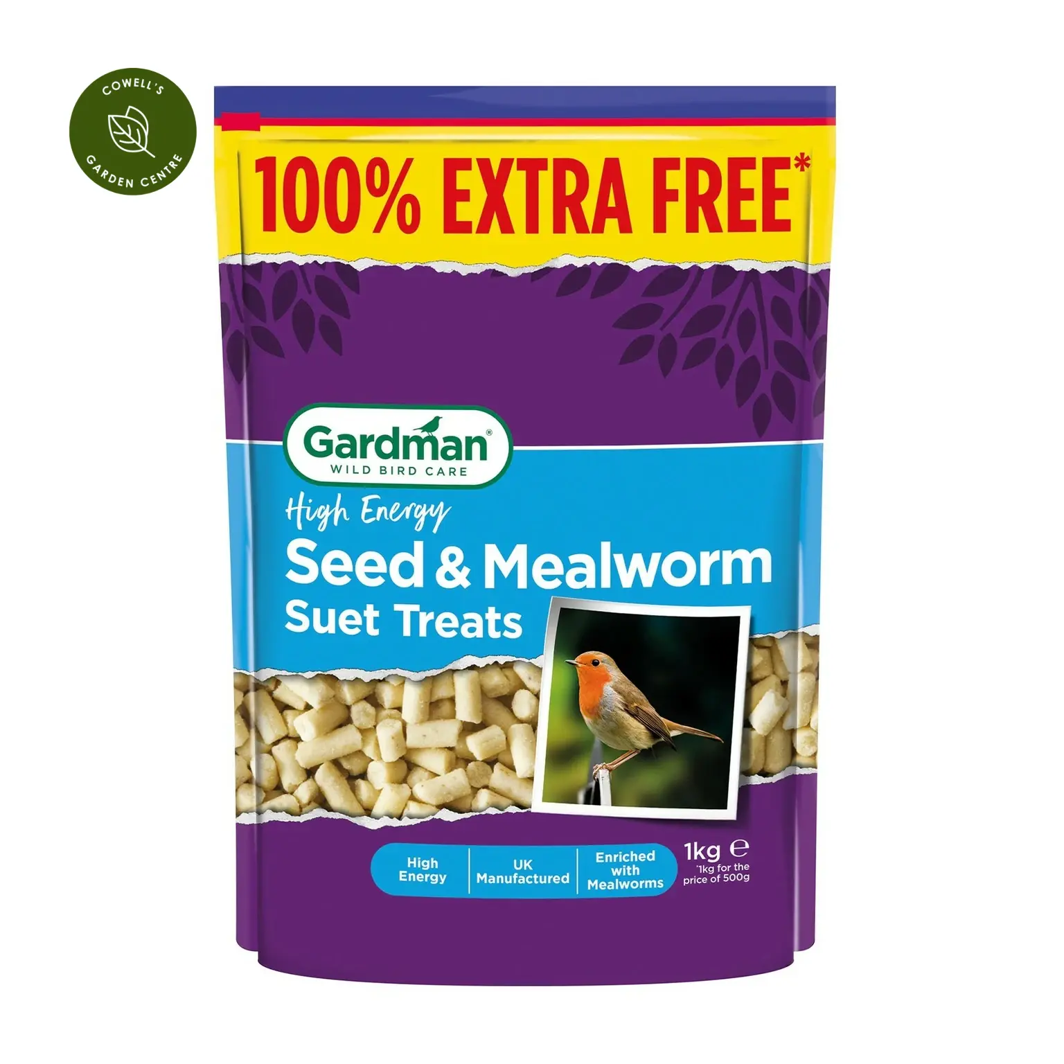 Gardman Seed and Mealworm Suet Treats are high in energy to help fuel birds for longer, and are enriched with mealworms for increased protein.