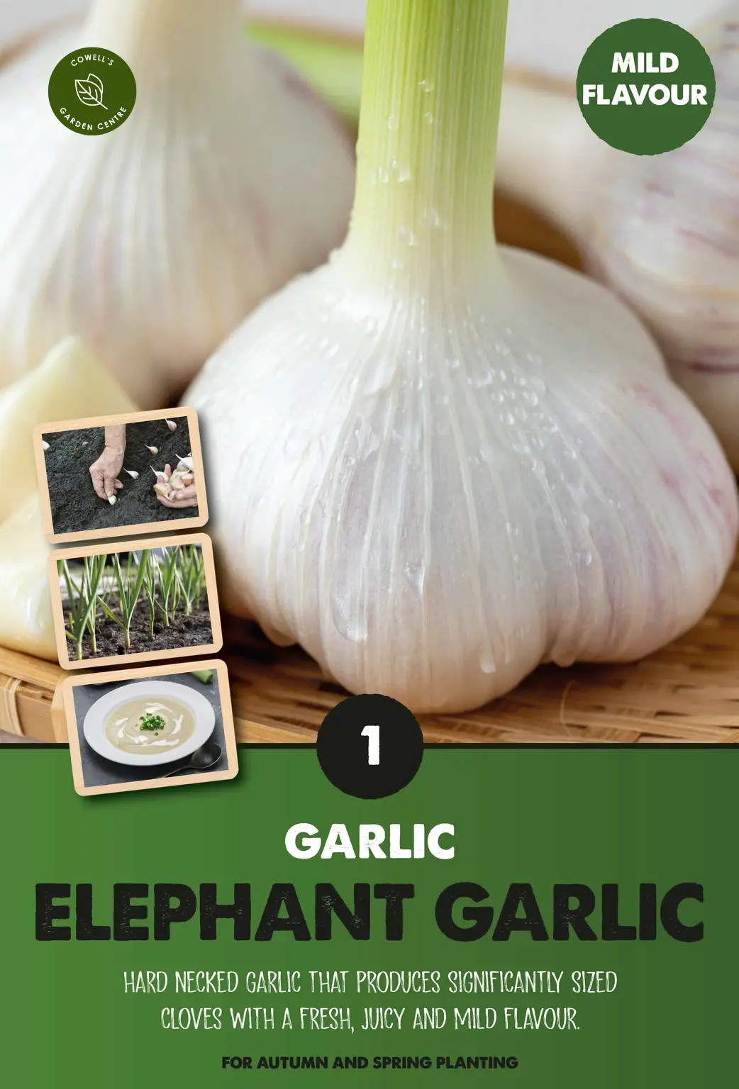 Garlic Elephant produces very large bulbs with oversized cloves and a mild, gentle flavour, making it ideal for roasting and lighter garlic dishes.