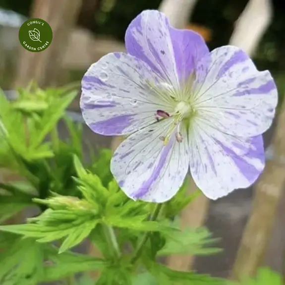 Geranium 'Splish Splash' is a charming and unusual cranesbill, producing eye-catching blue and white splashed flowers that create a distinctive, painterly effect. Blooming generously from early summer into autumn, it provides long-lasting colour in the garden.