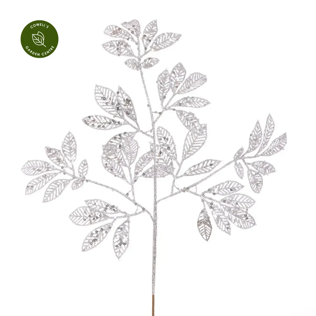 Glittering foliage artificial spray, ideal for enhancing a festive arrangement or adding into your Christmas tree for next level decor.