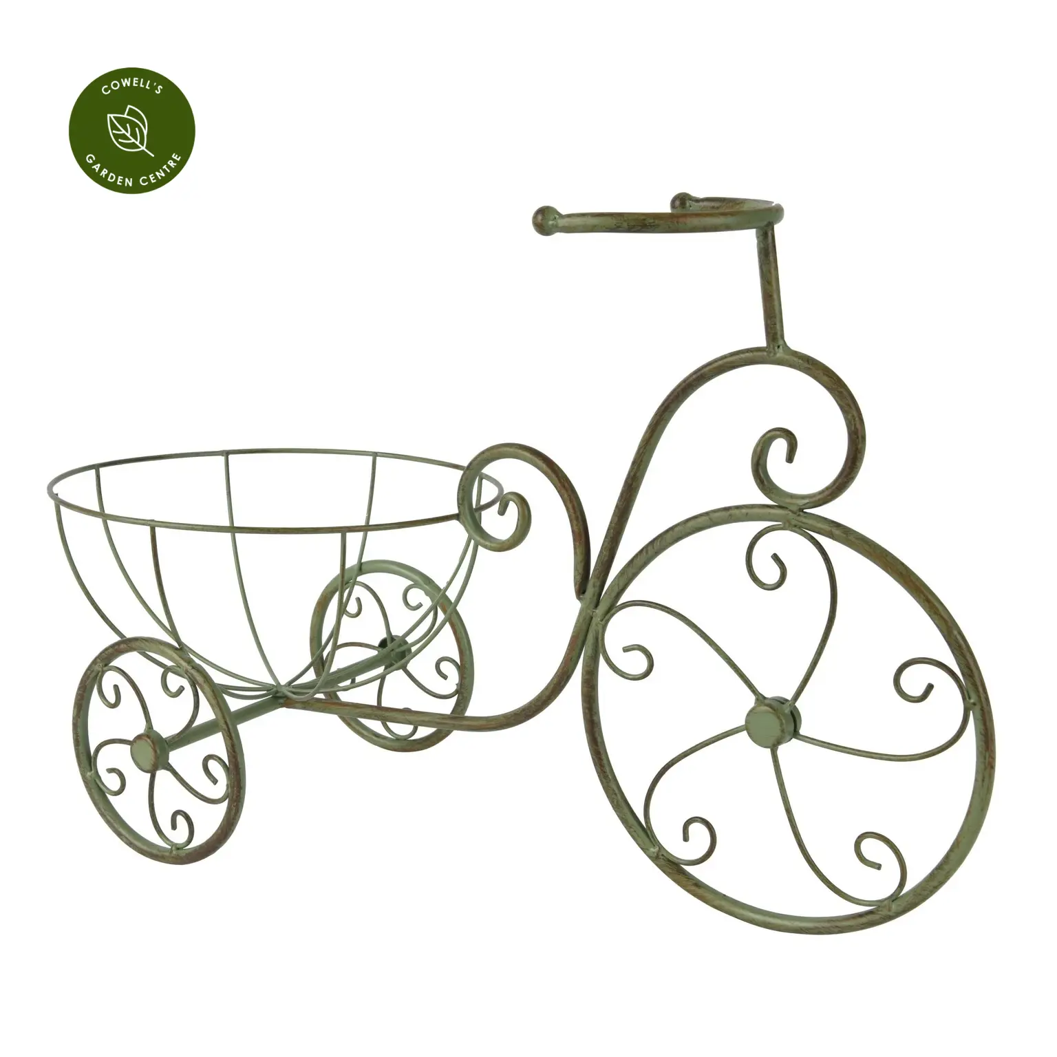 Add vintage charm to patios, balconies, or garden displays with this decorative green iron bicycle planter. Crafted from metal with an aged green finish, the classic bicycle design features integrated baskets perfect for showcasing potted plants, trailing foliage, or seasonal colour. Ideal for outdoor use, it brings character and height to borders, entrances, and courtyard spaces, whether styled with real or artificial plants.