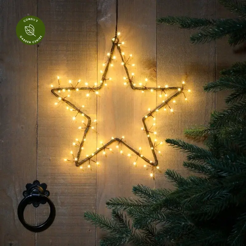 The rustic style, light up star silhouette features 100 antique white LED lights, making a great home decoration for all year round.