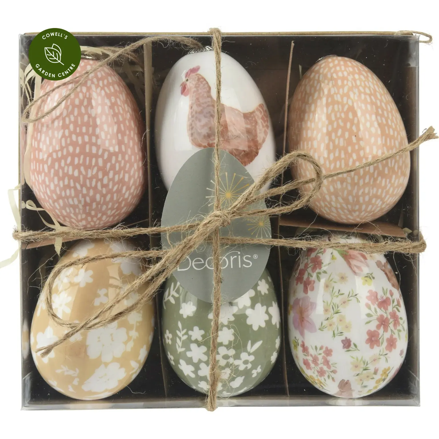 Set of six high gloss Easter eggs with cute seasonal designs.
