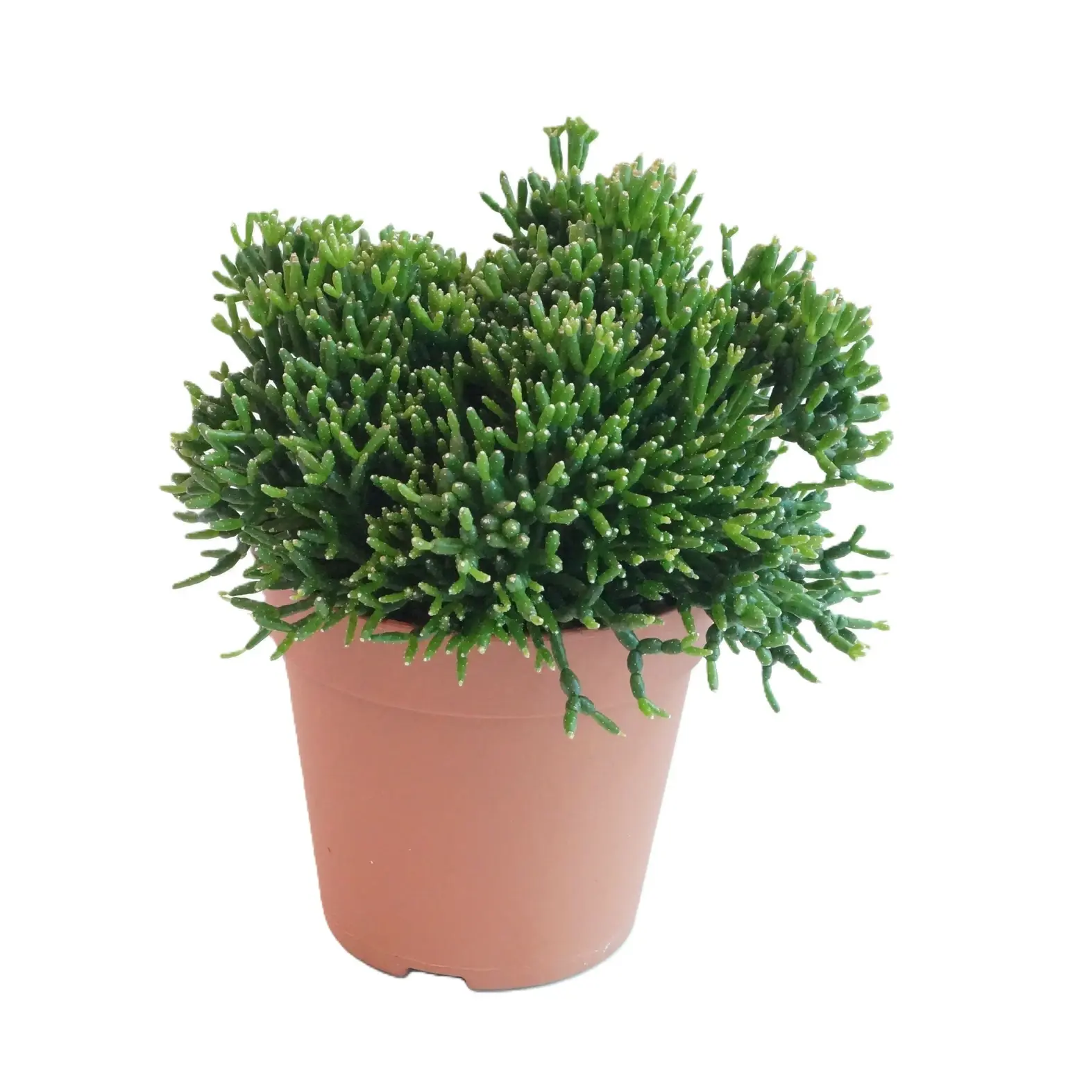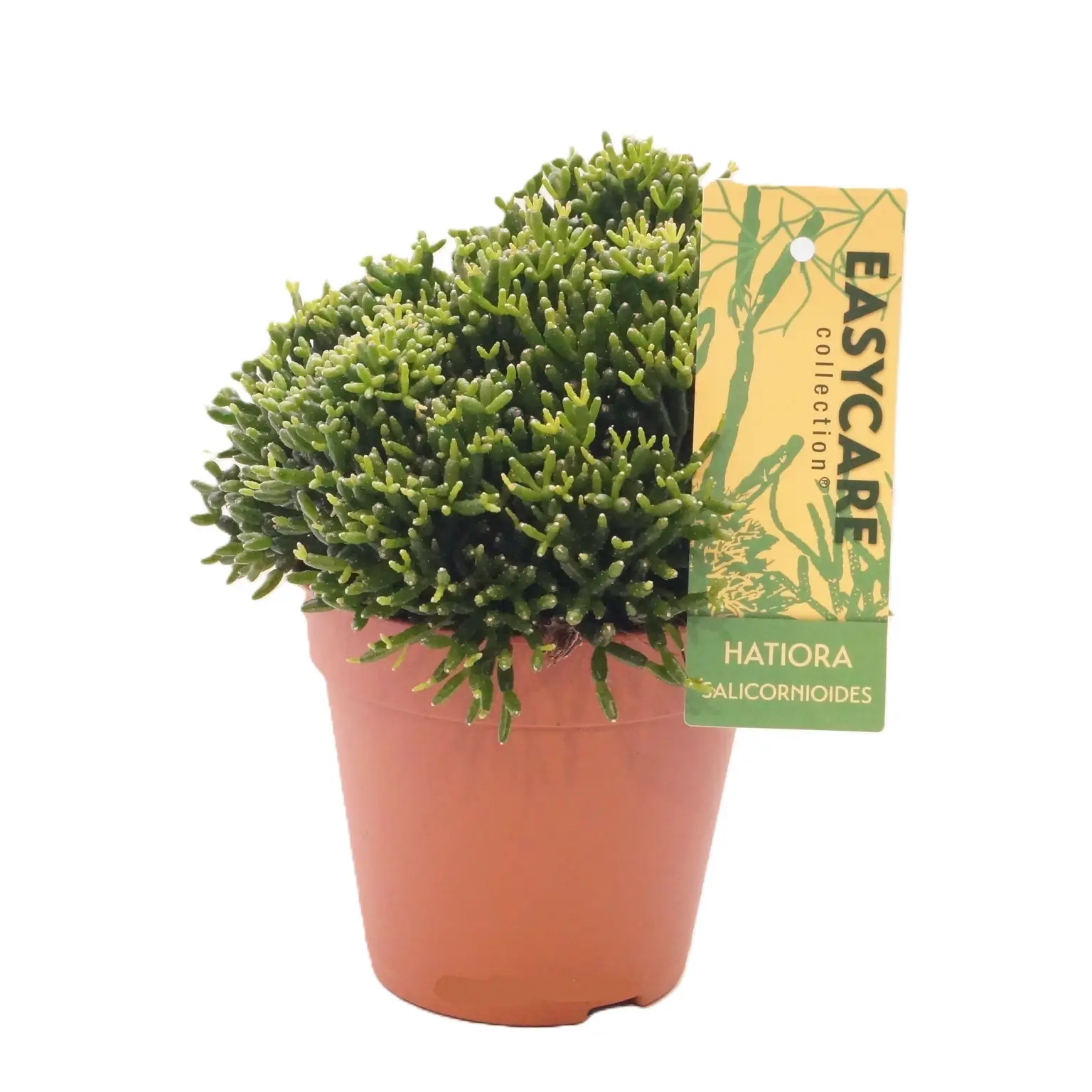 Hatiora salicornioides is an unusual epiphytic cactus known for its slender, segmented stems that resemble tiny branching fingers. Often referred to as the “Dancing Cactus”, its cascading, jointed growth creates gentle movement and a light, sculptural look. In spring, mature plants produce small, tubular yellow to orange flowers that add a cheerful burst of colour.