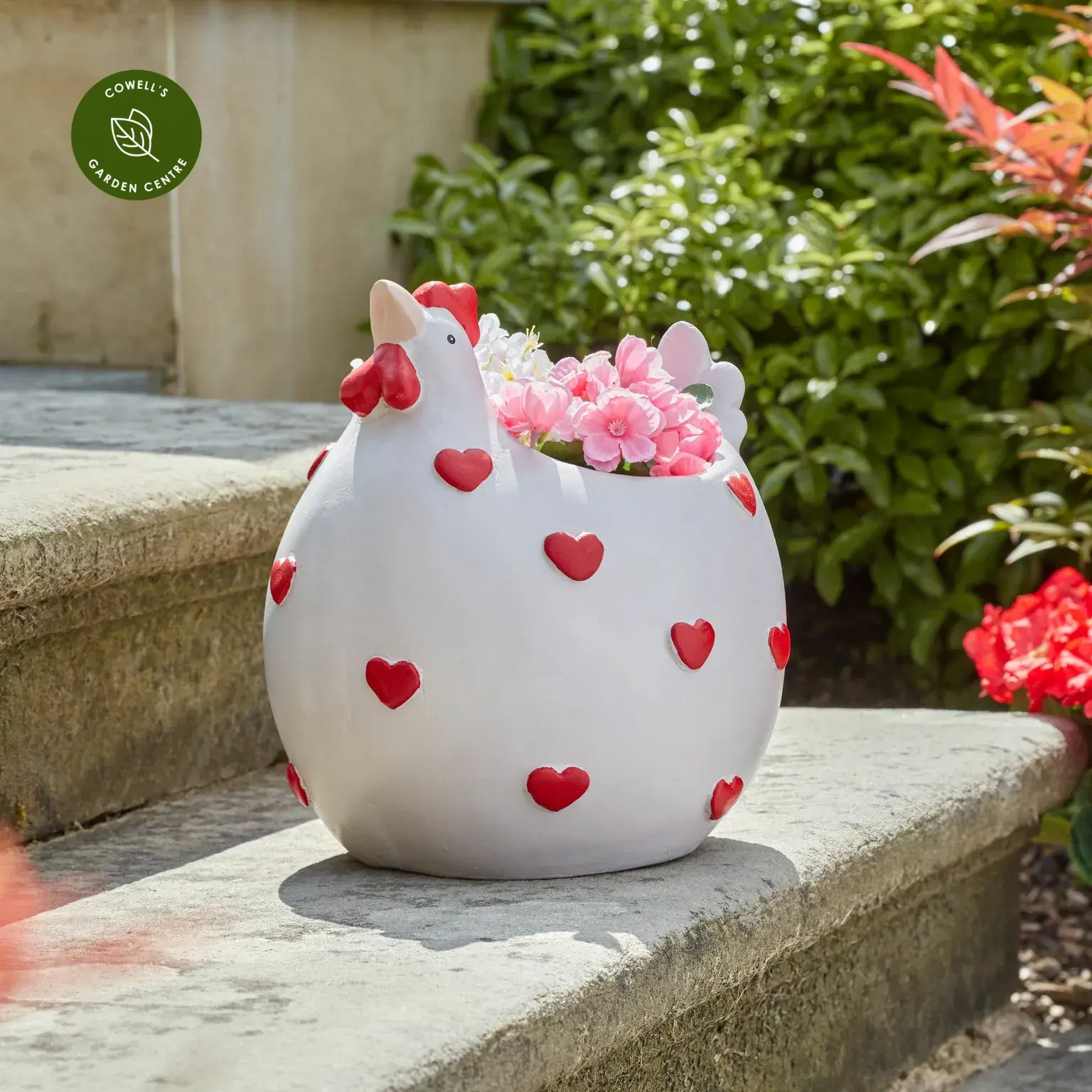 Add a fun and colourful touch to your home or garden with this charming hen planter. Featuring a decorative heart pattern, it’s perfect for brightening up patios, windowsills or indoor spaces. Made from durable, weather-resistant materials, it’s ideal for planting up with succulents, herbs or small flowering plants.