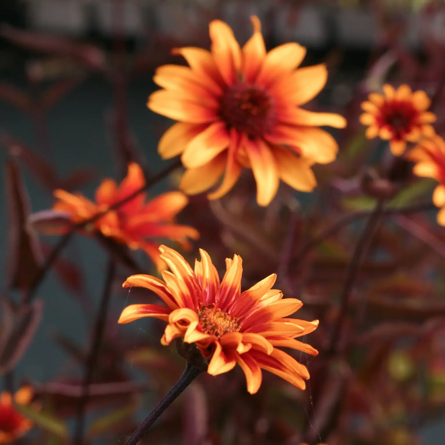 - Fiery yellow and orange flowers with dark centres