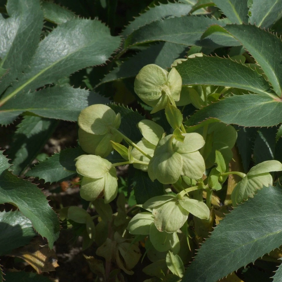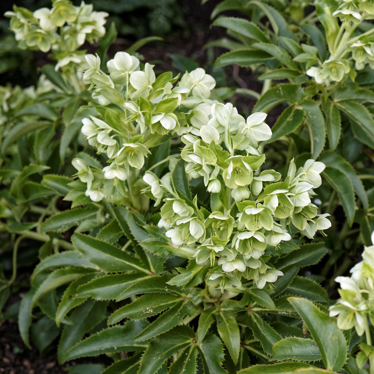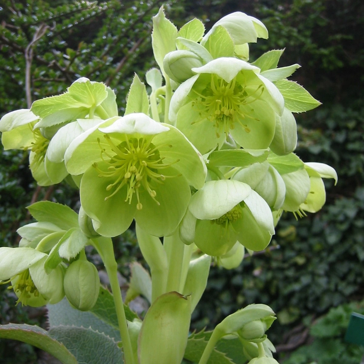 From late winter into spring (February to April), sturdy stems carry clusters of cup-shaped, pale green flowers that are long-lasting and subtly elegant. These blooms attract early pollinators, bringing welcome life to the garden when few other plants are in flower. Hardy and dependable, it thrives in partial shade in fertile, well-drained soil, and is particularly effective in woodland gardens, shaded borders, or naturalistic planting schemes.