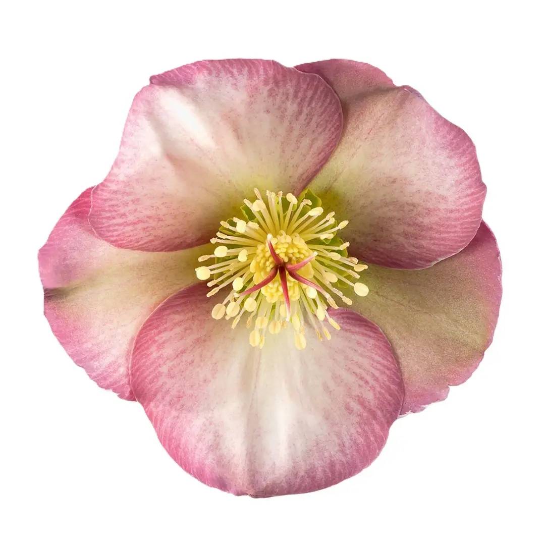 Helleborus Frostkiss® 'Penny's Pink' is a breakthrough hellebore with deep pink blooms, red stems and uniquely marbled pink-toned foliage. Named after renowned garden writer Penelope Hobhouse, this exceptional variety took 15 years to develop and showcases some of the most advanced breeding in the genus. Its long flowering season and richly coloured evergreen leaves make it a standout choice for winter containers, borders and woodland planting.