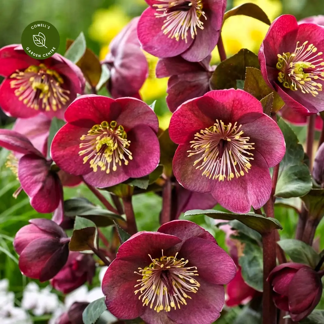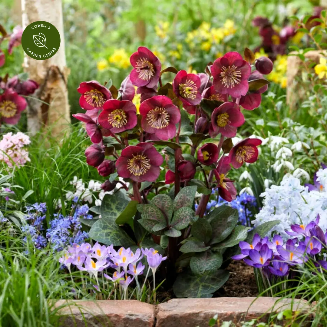 Helleborus Frostkiss® 'Vibey Velvet' is a stunning evergreen perennial that adds a touch of richness and colour to the late winter and early spring garden. From January to April, it produces deep red-purple flowers that glow above striking marbled foliage, bringing warmth and texture to shaded spaces. The blooms are long-lasting and beautifully complemented by the plant’s strong, upright habit.