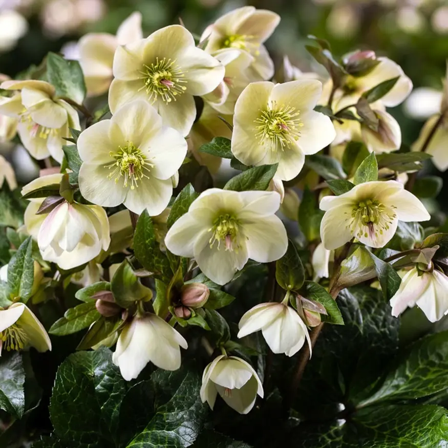 Helleborus HGC® Ice N' Roses® ‘Milla Marble’ is a striking winter-flowering hellebore, prized for its beautifully marbled foliage and elegant cream-coloured blooms. Fine pale veining across the leaves adds year-round interest, perfectly complementing the soft flowers that emerge from January and continue well into spring, bringing valuable early-season colour to the garden.