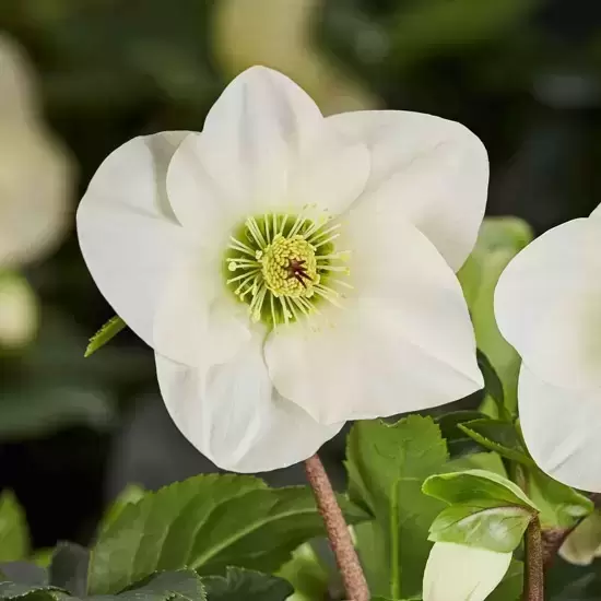Helleborus 'Linda' is a graceful evergreen perennial from the HGC® Winter Ballet series. It produces large, forward-facing pure white blooms, each accented with a bold central boss of golden stamens. Flowering generously from January through to April, the tall, sturdy stems hold the flowers well above the evergreen foliage, creating a striking display during the darkest months of the year.
