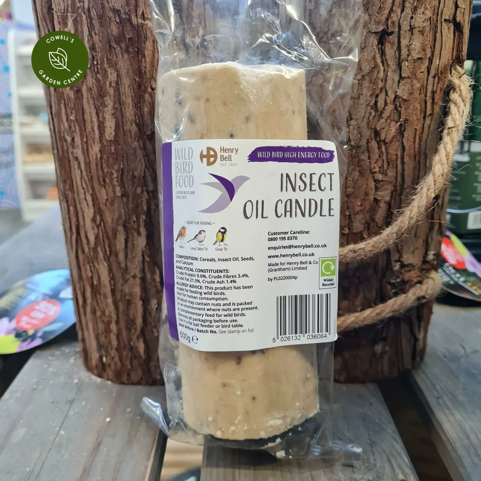 The Henry Bell Insect Oil Hanger is shaped like a candle and is a favourite among wild birds, offering a rich source of essential nutrition. Specially formulated to attract a wide variety of species—including Robins, Long-Tailed Tits, and Great Tits—this energy-packed treat makes a valuable addition to any feeding area.