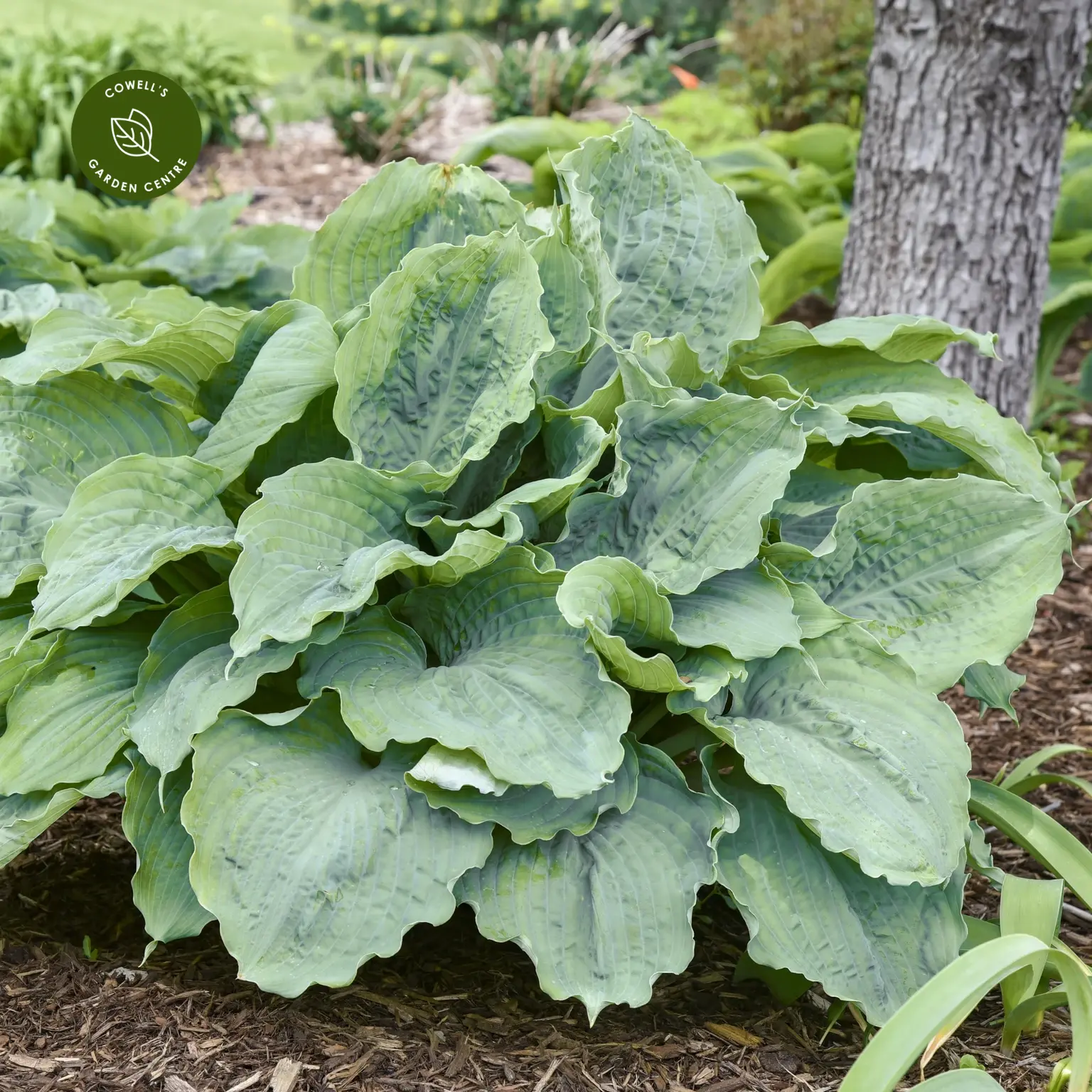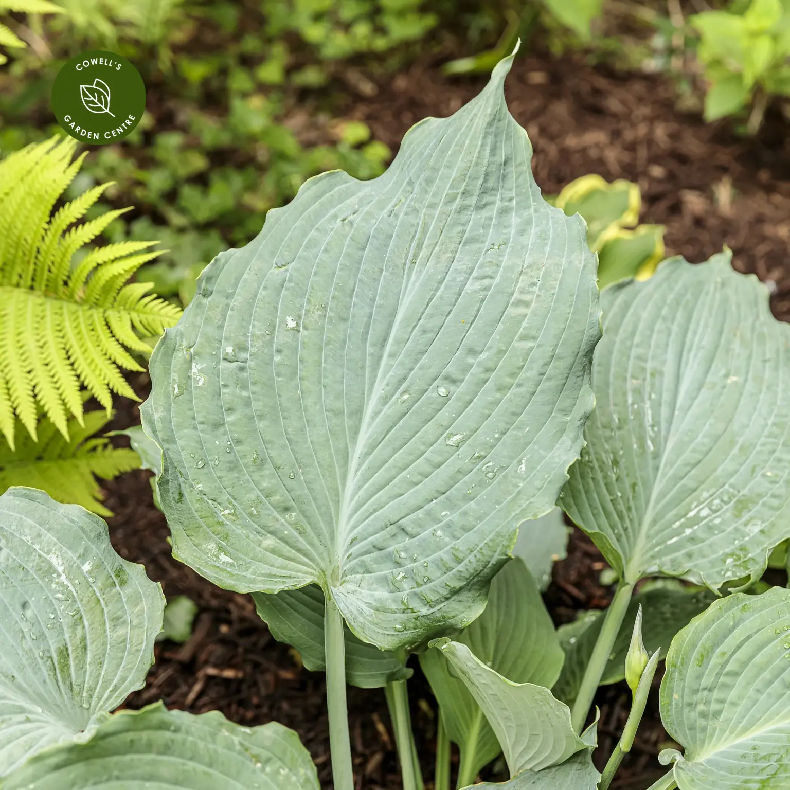 In summer, tall stems rise above the foliage bearing pale lavender flowers, adding a soft contrast to the dramatic leaves. Ideal for adding structure and texture, this standout hosta thrives in moist, well-drained soil and looks particularly effective when planted in groups or used as a focal point in containers.