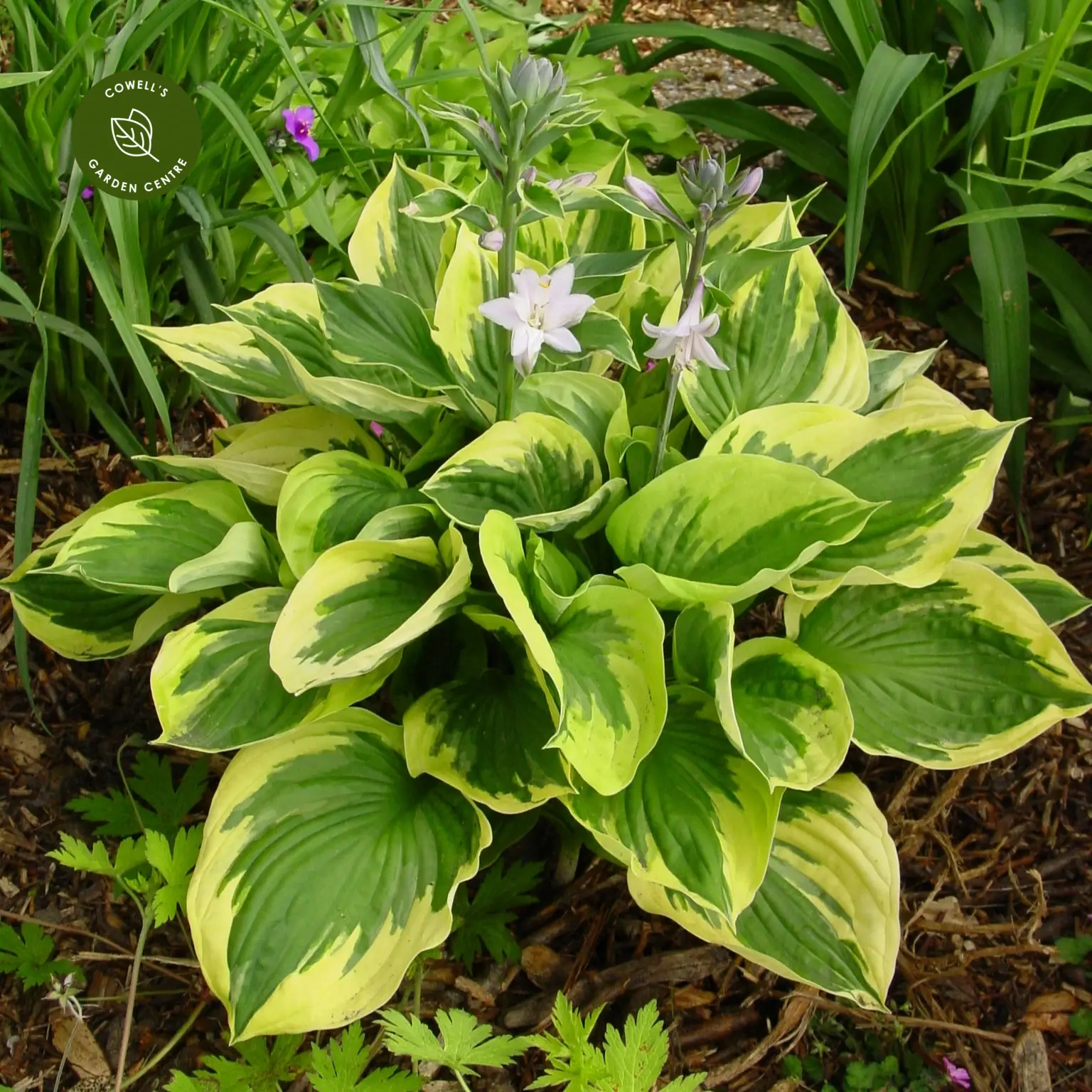 Forming a neat, mounding clump, this Hosta is ideal for borders, containers, and woodland planting schemes where its foliage can lift darker spaces. In summer, upright stems carry soft pale lavender flowers above the foliage, adding a gentle seasonal highlight.
