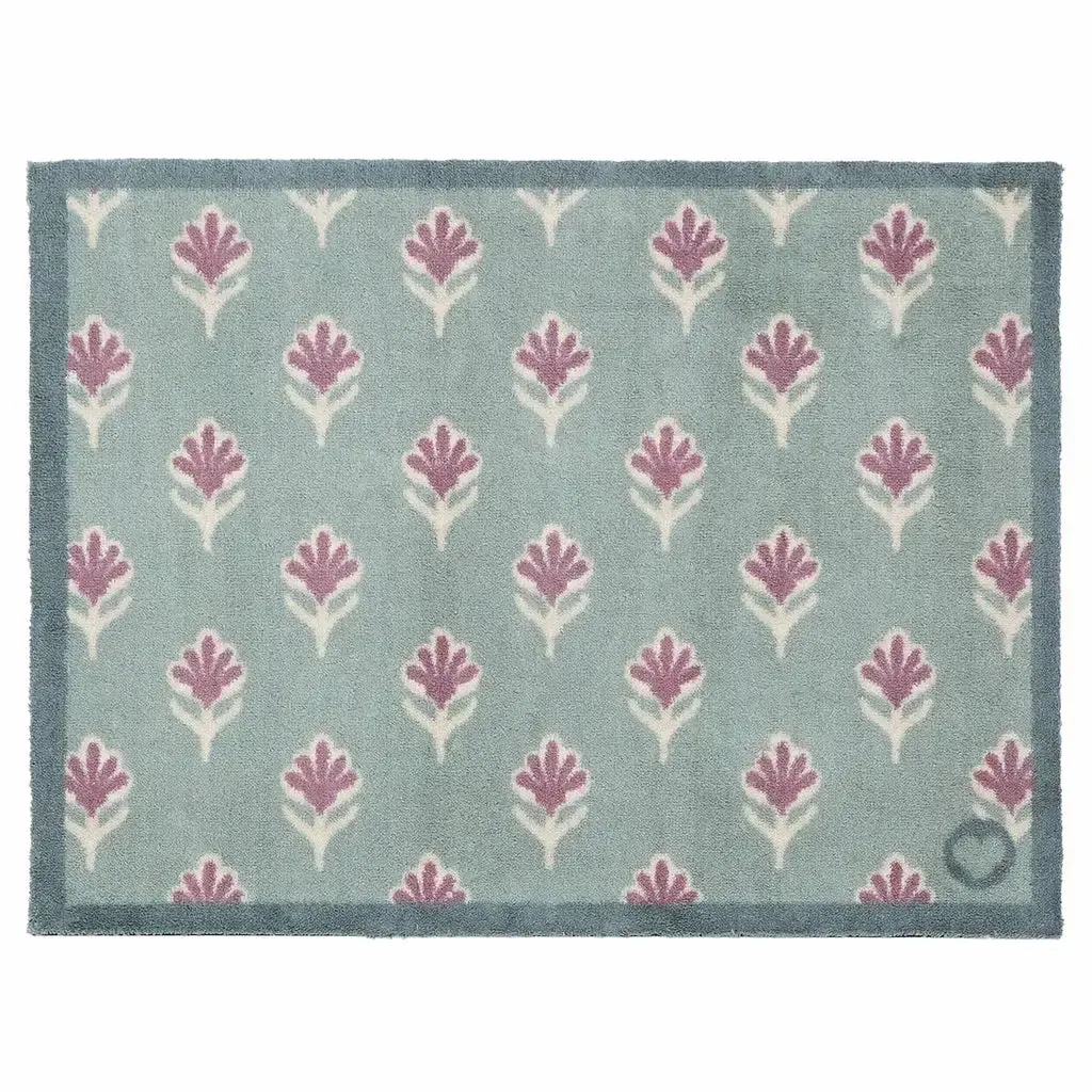 Add a fresh botanical touch to your home with the Ditsy Floral Green washable doormat. Featuring a green background with a woodblock-style pattern of delicate purple flowers, this charming design brings subtle colour and natural style to any entrance.