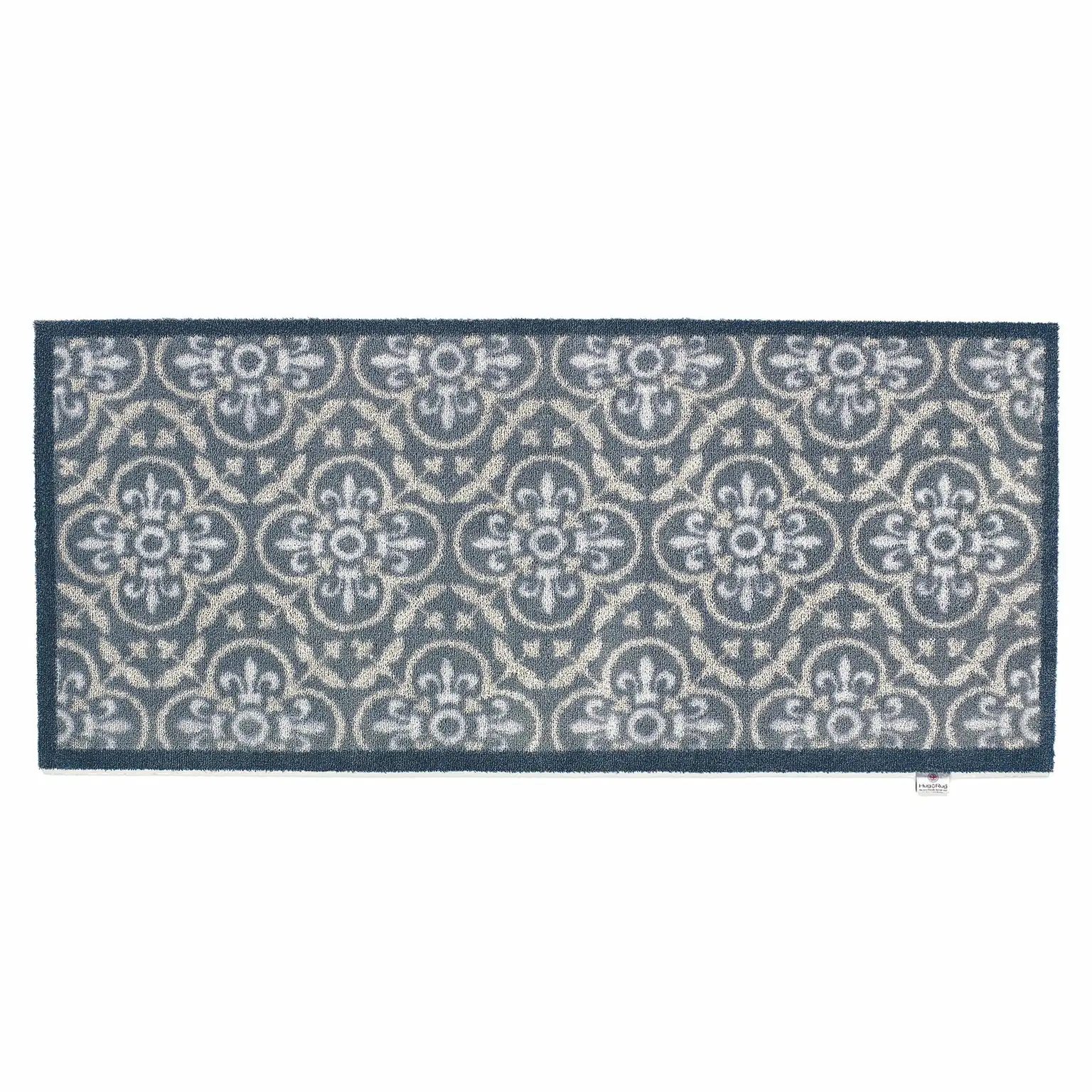 Add a touch of traditional elegance with our Home Grey washable runner. Set against a grey backdrop, this design features a heritage-inspired pattern in cream and white. Designed with a low pile height to glide effortlessly under doors while providing a luxurious cushioned feel.