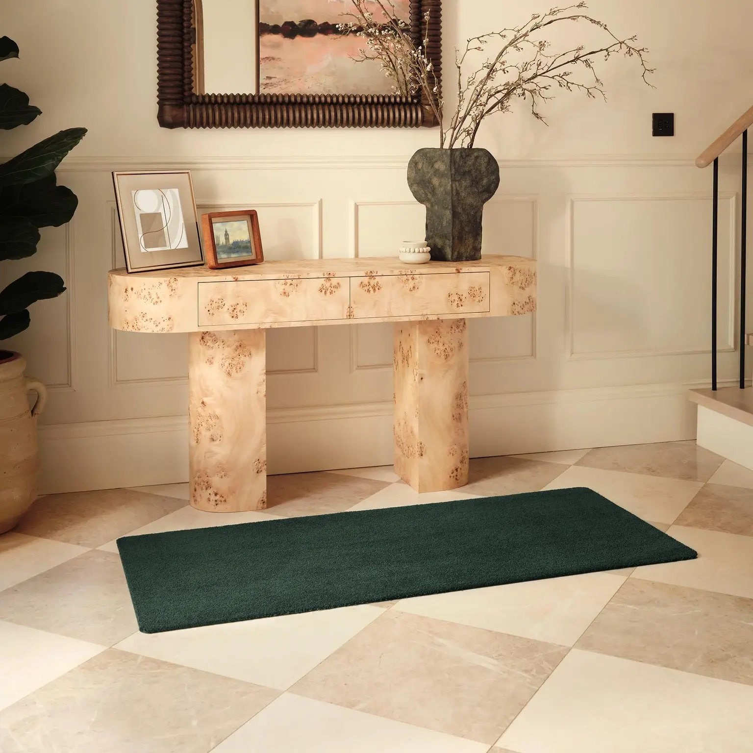 The Sense Green Washable Runner combines indulgent softness with everyday functionality to bring luxury practicality to your home, in an inviting colour. Designed with a luxurious pile height to fit under doors while offering a cushioned feel.