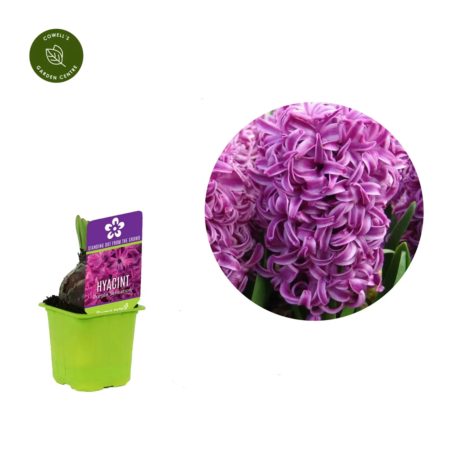 Hyacinthus orientalis 'Purple Sensation' is a beautifully scented hyacinth producing rich purple flower spikes that bring colour and fragrance to winter and spring displays. Indoors it flowers from December to March, offering a long-lasting, uplifting bloom period. Outdoors, it flowers in April and May, creating a striking spring display in borders or containers.