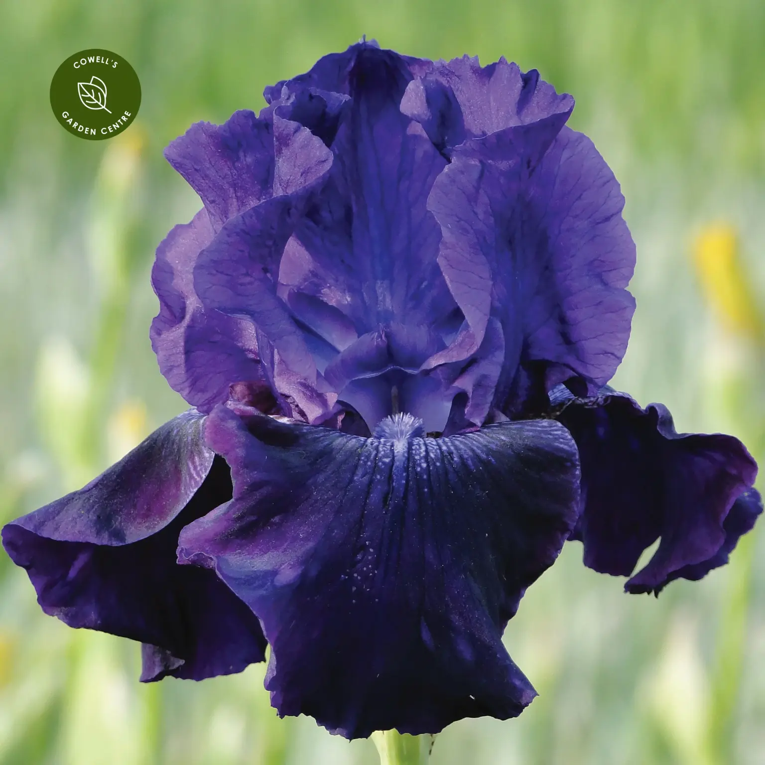 'Rosalie Figge' is a re-blooming variety, producing ruffled blooms of deep indigo purple, with a blue beard and light fragrance.