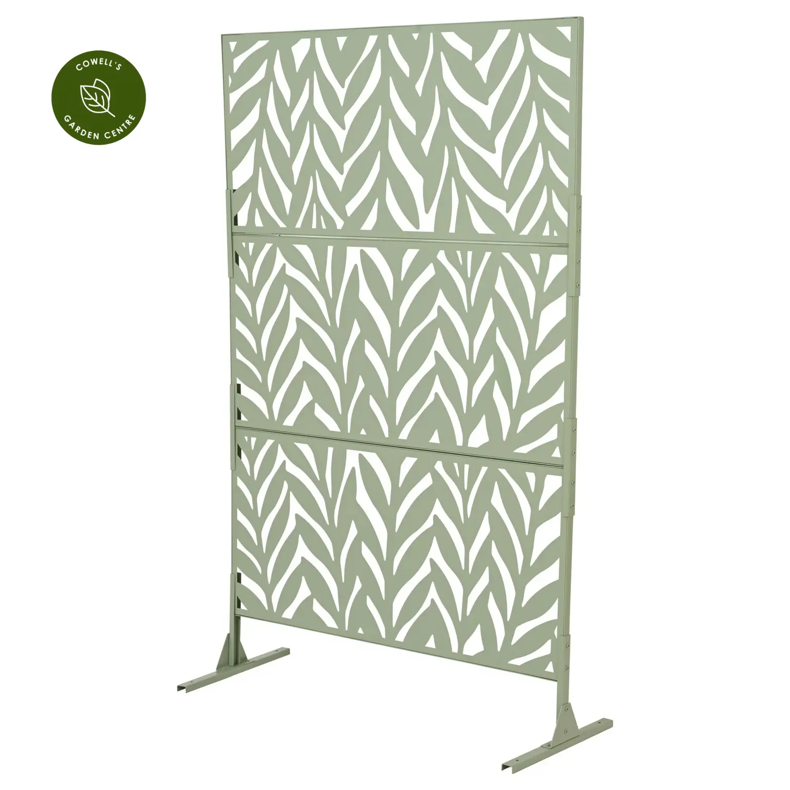 Add structure, privacy and decorative interest to your garden with this striking metal garden screen. Made from iron with an attractive sage green finish, the cut-out leaf design creates a bold focal point while still allowing light to filter through.