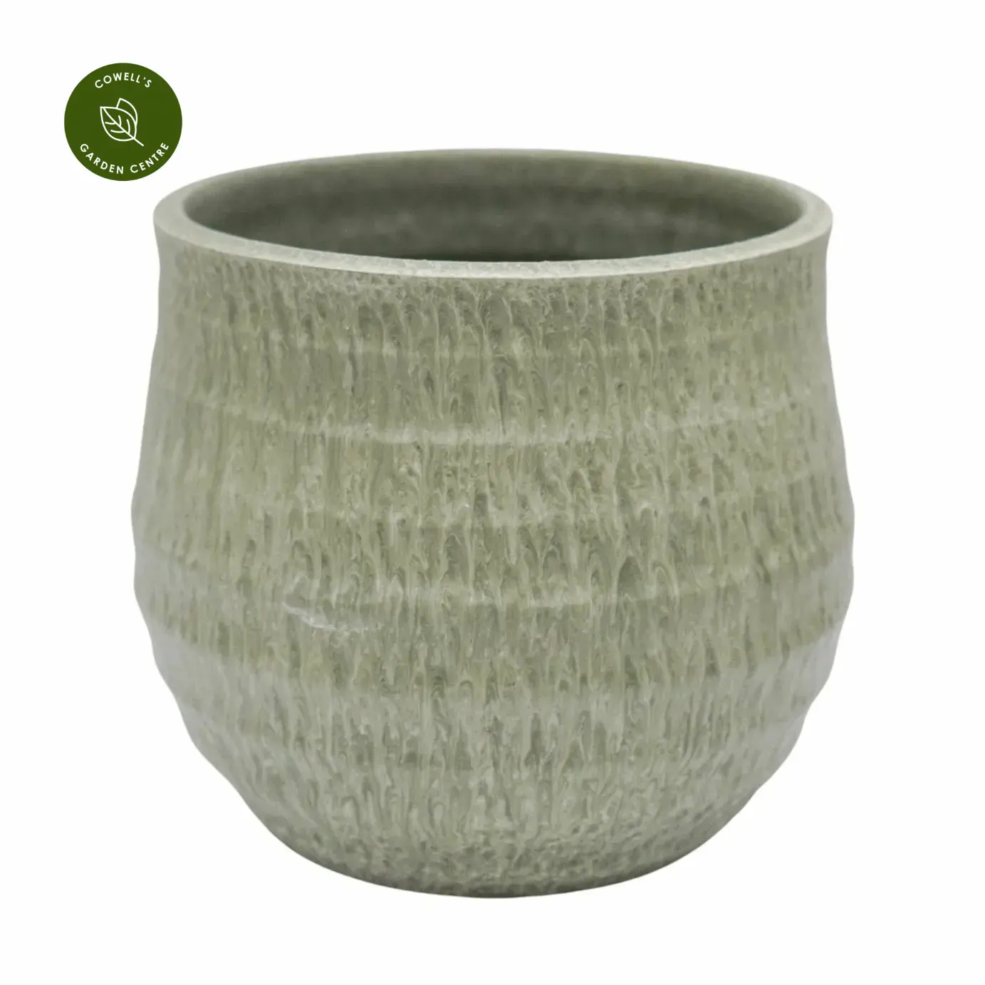 Add a soft, natural touch to your home with this olive green ceramic pot, finished with a subtle honeycomb texture. Its rounded shape and muted glaze make it an easy fit for shelves, windowsills or plant displays, complementing a wide range of houseplants.