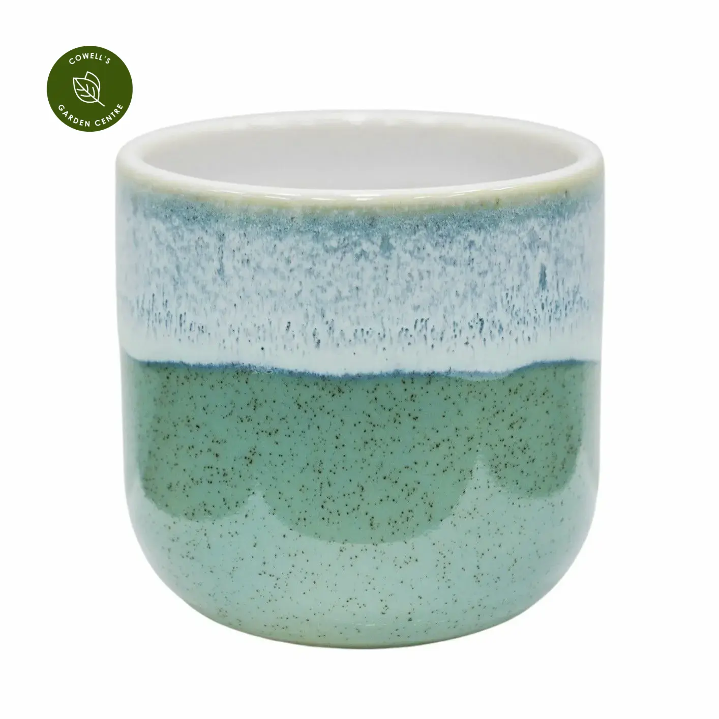 Add a soft, calming touch to your indoor space with this ceramic planter featuring a dipped reactive glaze finish in turquoise tones. The layered glaze creates a subtle variation in colour and texture, making each piece unique. Ideal for houseplants, it pairs beautifully with a range of foliage to create a clean, contemporary look.