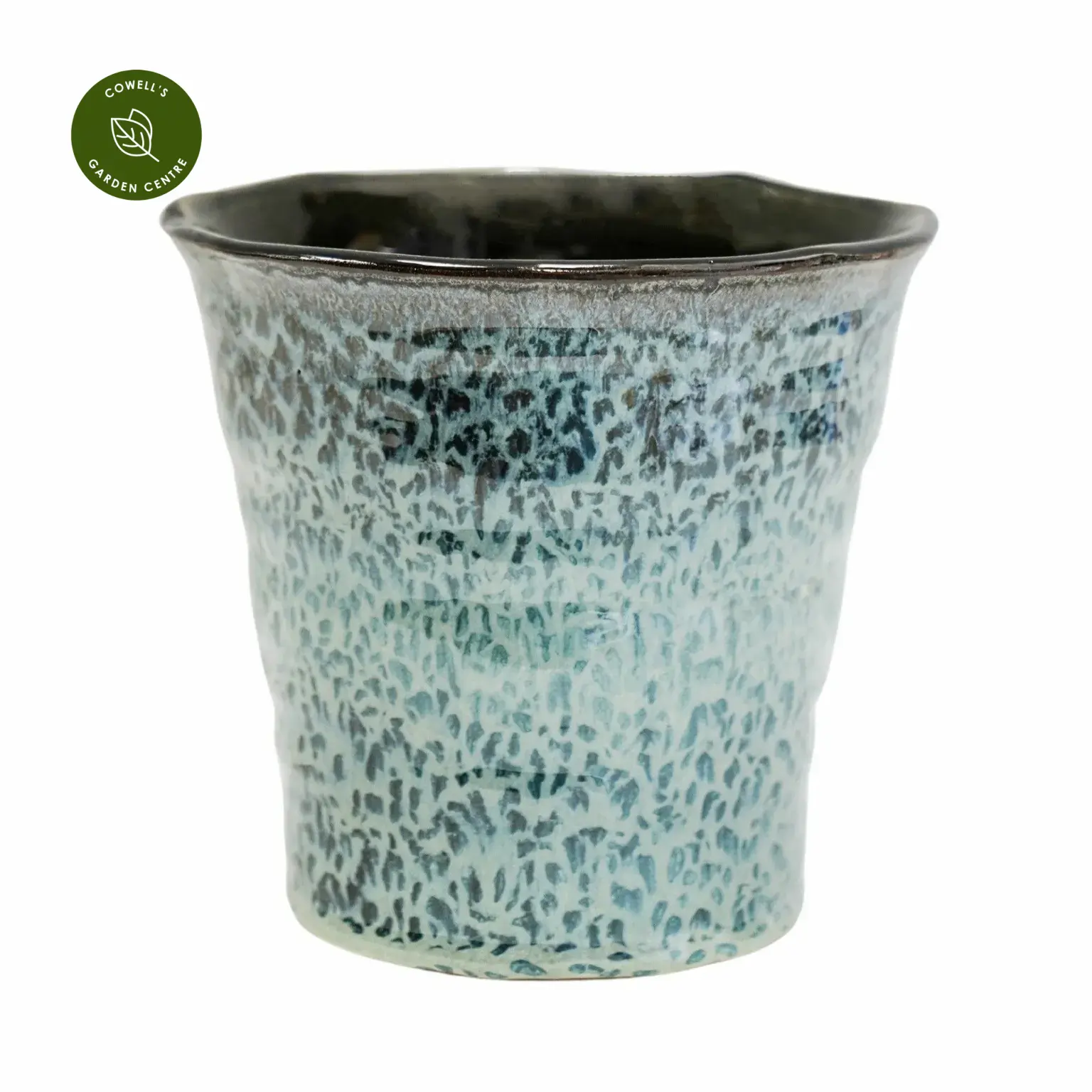 - Finished in a calming blue reactive glaze