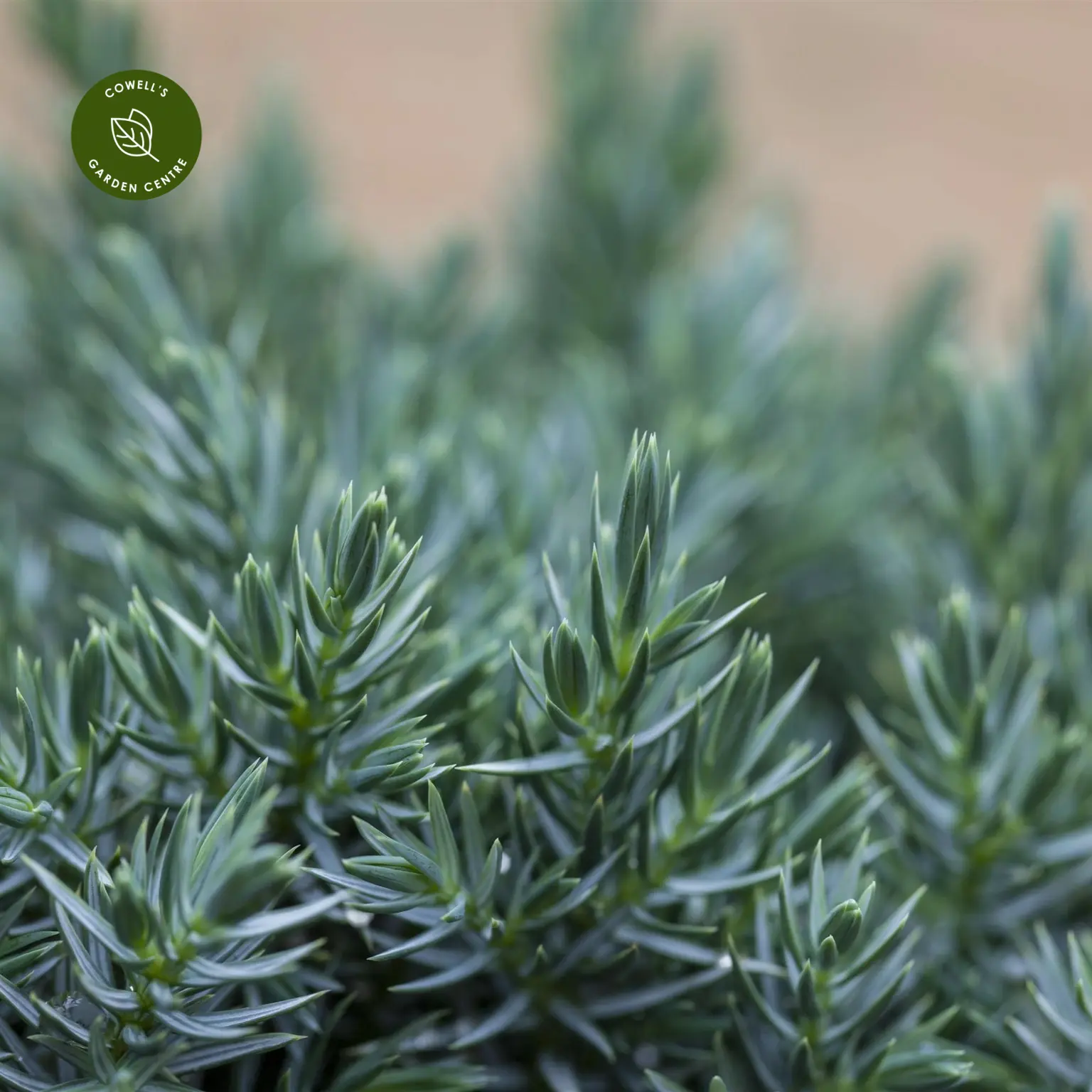 Juniperus 'Blue Star' is a compact, slow-growing evergreen Conifer with dense clusters of steel-blue needles that form a neat, dome-shaped mound. Its intense blue foliage holds its colour well throughout the year, providing a striking contrast in rock gardens, borders, or containers.