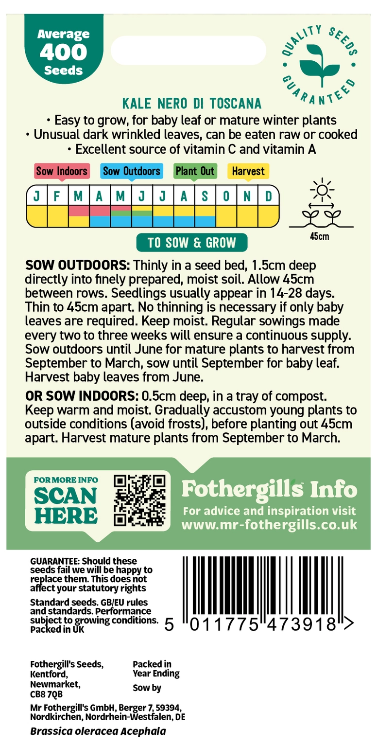 Nutritious baby leaf or winter veg. Sow outdoors until June for mature plants to harvest from Sept to March, sow until September and pick as required for baby leaf. Sow indoors for mature plants only.