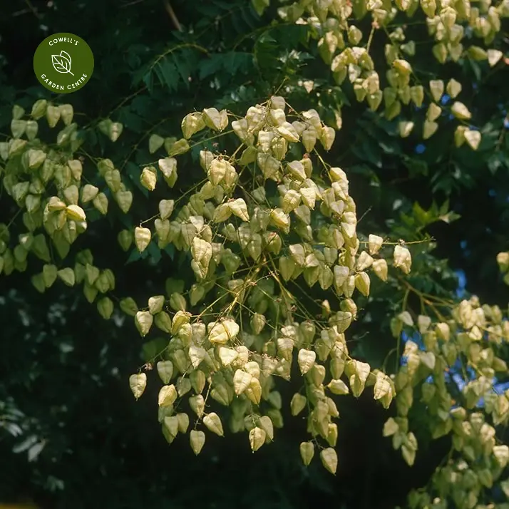 Koelreuteria paniculata, commonly known as the Golden Rain Tree, is a small deciduous tree admired for its long-lasting seasonal interest. In midsummer, it bears large, showy panicles of bright yellow flowers, which cascade like golden confetti and are highly attractive to pollinators. These are followed by distinctive papery, lantern-like seed pods that mature to a warm pink-bronze, adding decorative interest well into autumn.